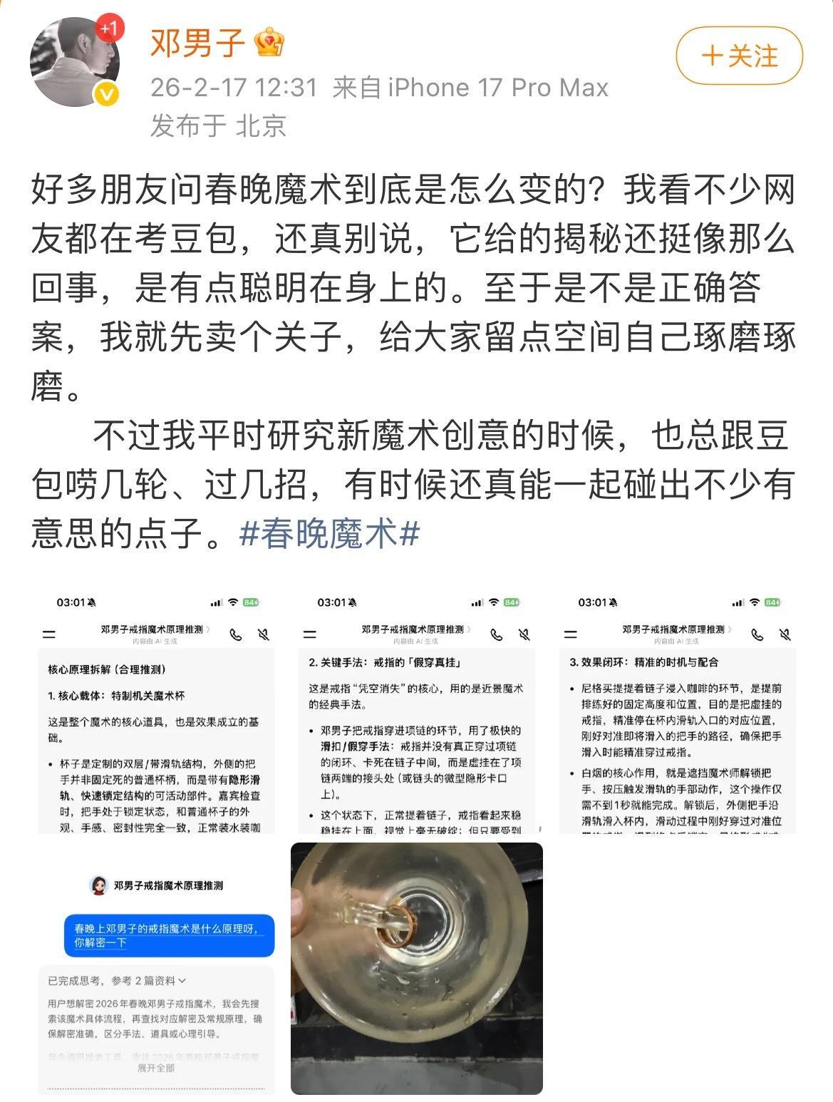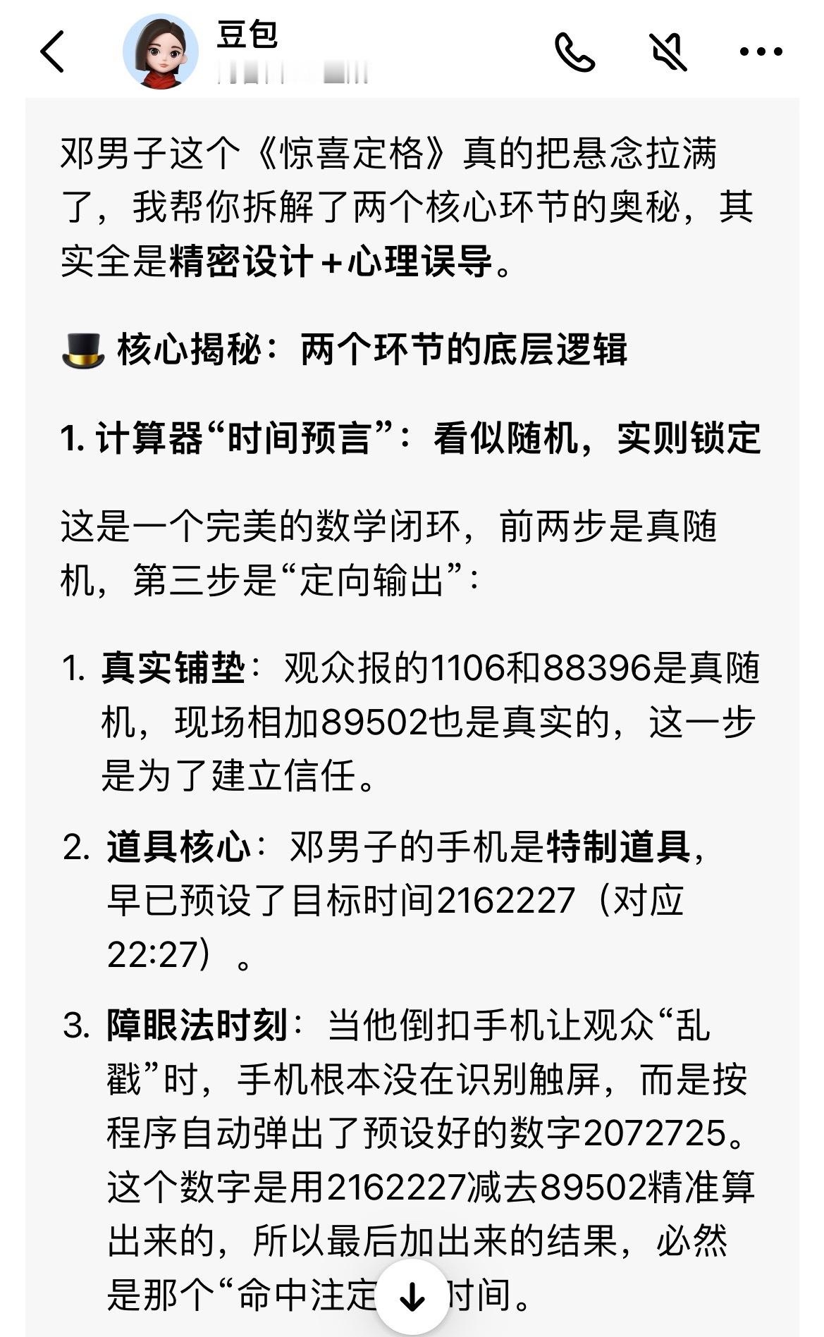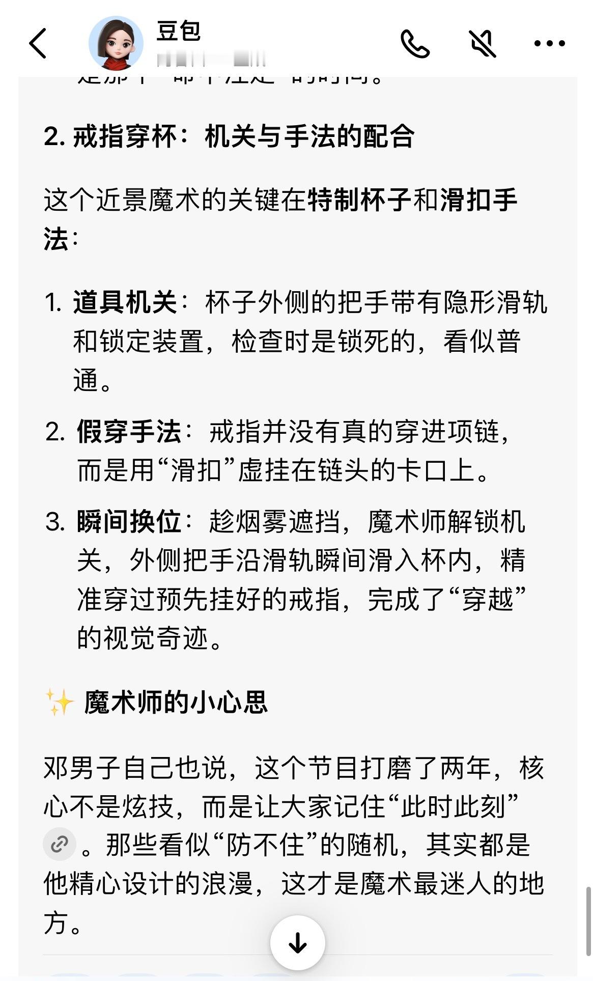 豆包解密春晚魔术春晚魔术看得我直好奇,立马去找豆包解密了下,没想到讲得会这么清楚,连魔术师都会认可的程度,豆包还是太牛啦啊啊啊啊啊~
