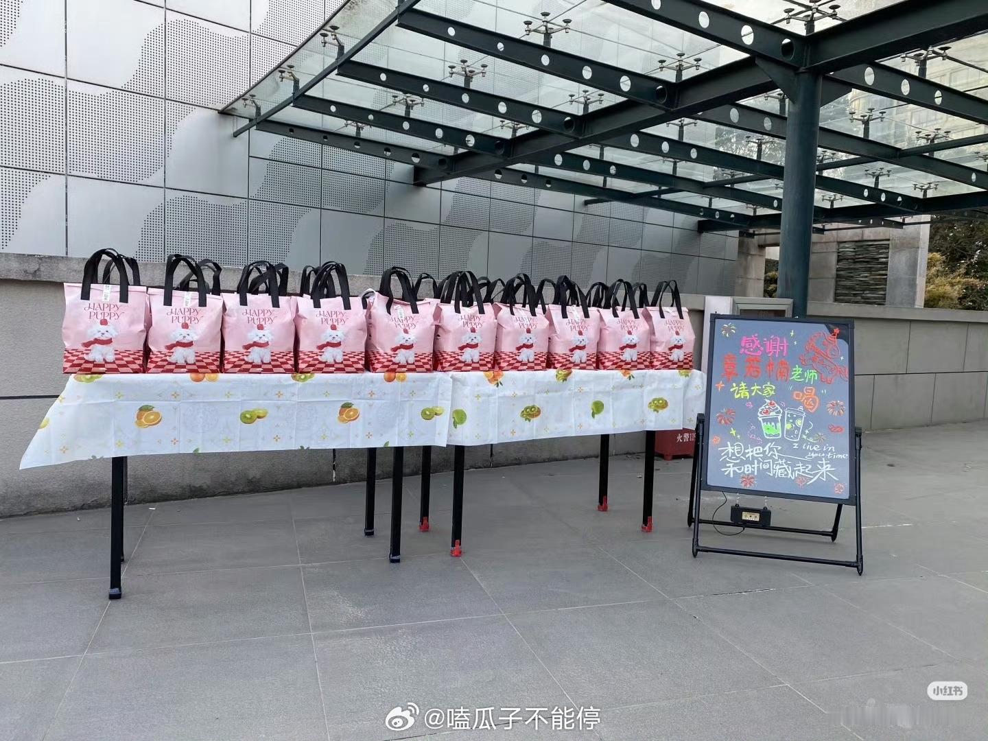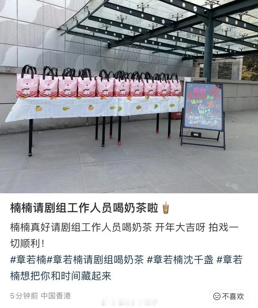 章若楠请新剧组《想把你和时间藏起来》的工作人员喝奶茶了,人美心善的美女