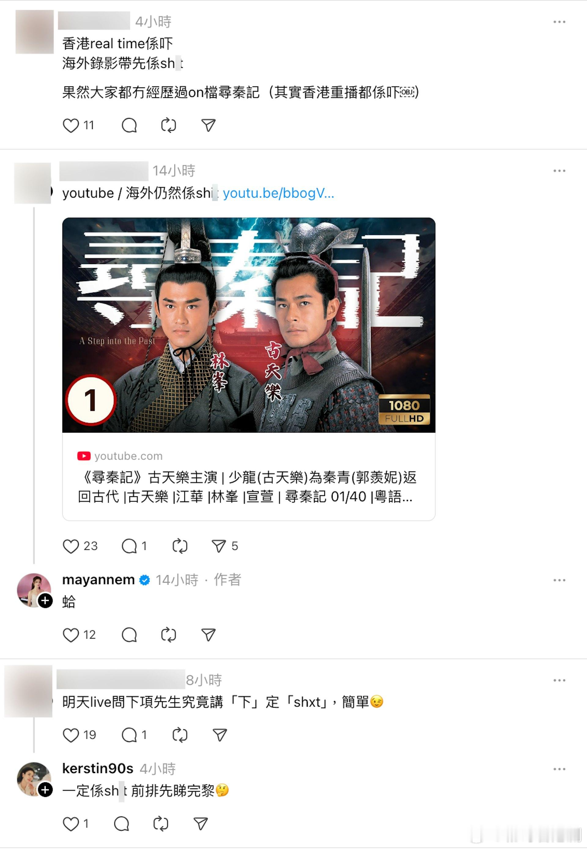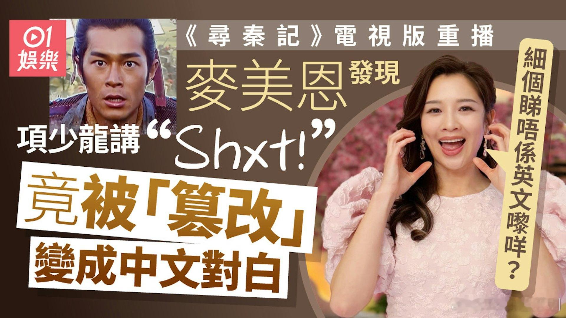 尋秦記|TVB重播版項少龍講「Shxt」驚變中文 麥美恩:冇咗句英文.《尋秦記》電影票房大收,近日更推出了《尋秦記》Plus+多元宇宙版(加長版),而早在電影上映前,網民已紛紛透過不同途徑翻煲2001年的電視版,而TVB在昨日(17日)大年初一亦正式重播此劇,旗下藝人麥美恩亦坐定定收睇,期間竟有一大驚人發現!