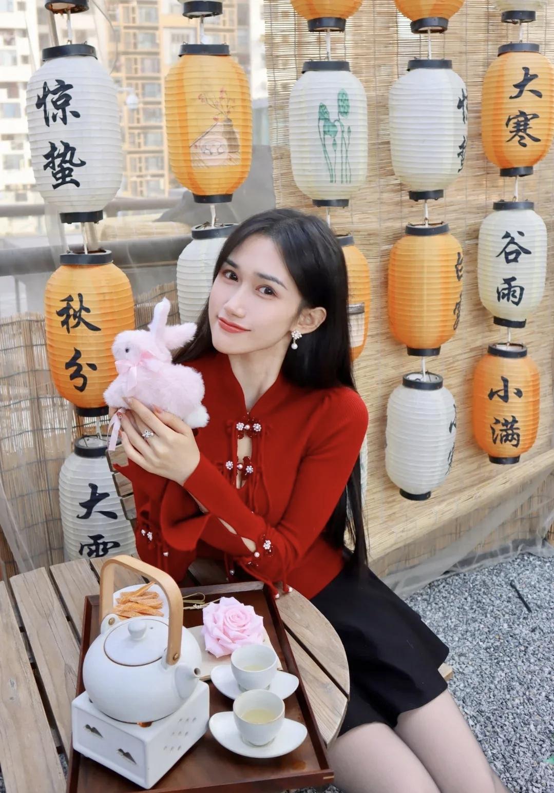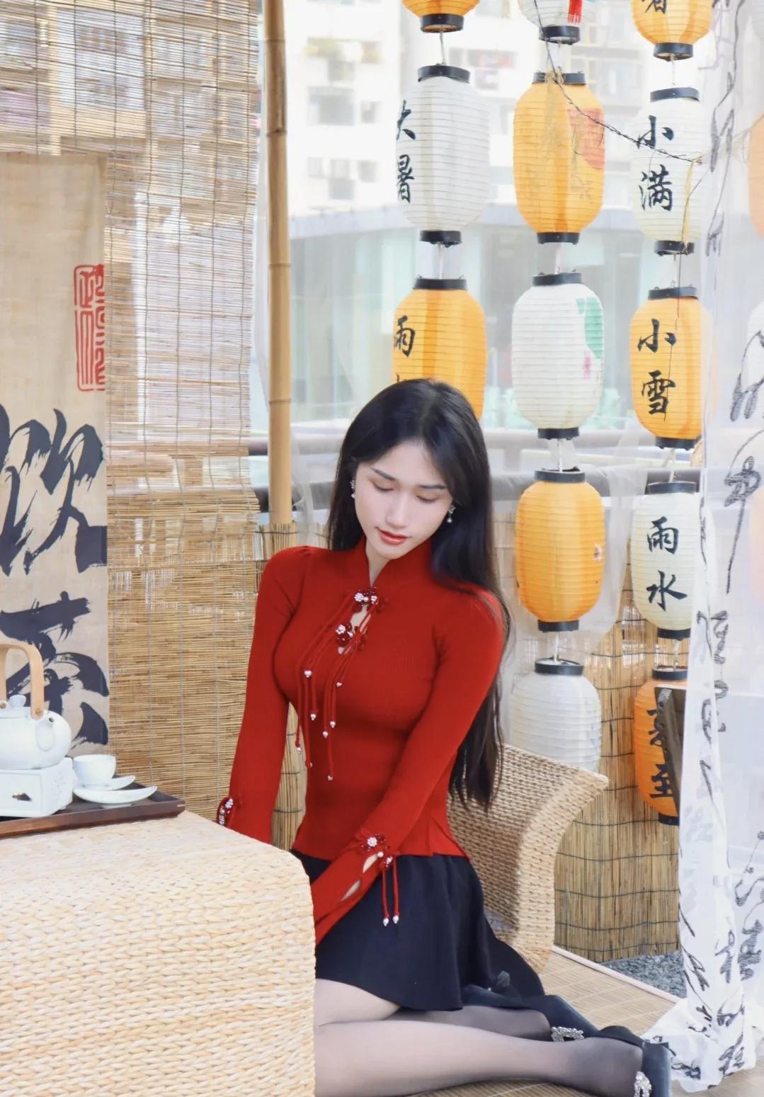 红衣少女与传统灯笼的唯美邂逅🌸✨