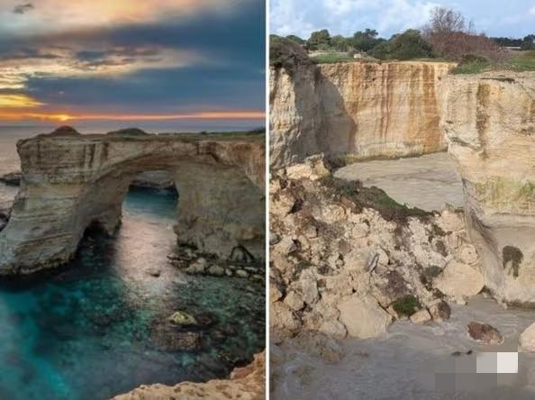 这下好了, 意大利普利亚大区的GDP要 连续跌停了! 意大利地标之一的恋人拱门塌了,传说情侣在拱门下亲吻可获得永恒爱情的圣地塌了! 我去查了一下,这由于连遭狂风暴雨和长期海水的侵蚀,脆弱的石灰岩拱门不堪一击! 超千万情侣来景点打卡的照片已成回忆! 网友评论,看来情人节还是不稳定,爱情也不是永恒。再坚固的岩石也承受不住你们的谎言! 对此,大家怎么看?