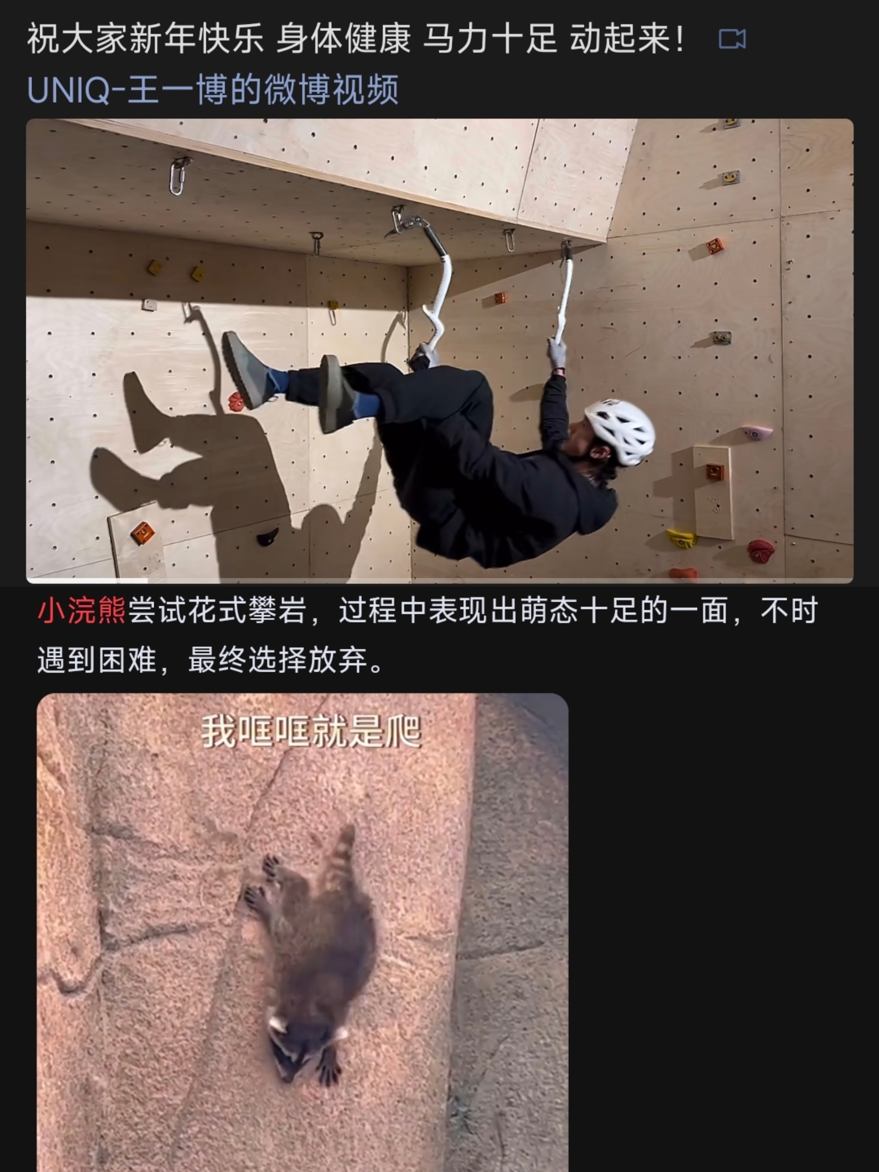 总算磕明白了,肖战大年三十发小浣熊,原来小浣熊也是攀岩高手。王一博大年初一直接回应了干攀视频。24小时定律诚不欺我!肖战没直接发岩羊,已经是给唯粉最后的体面