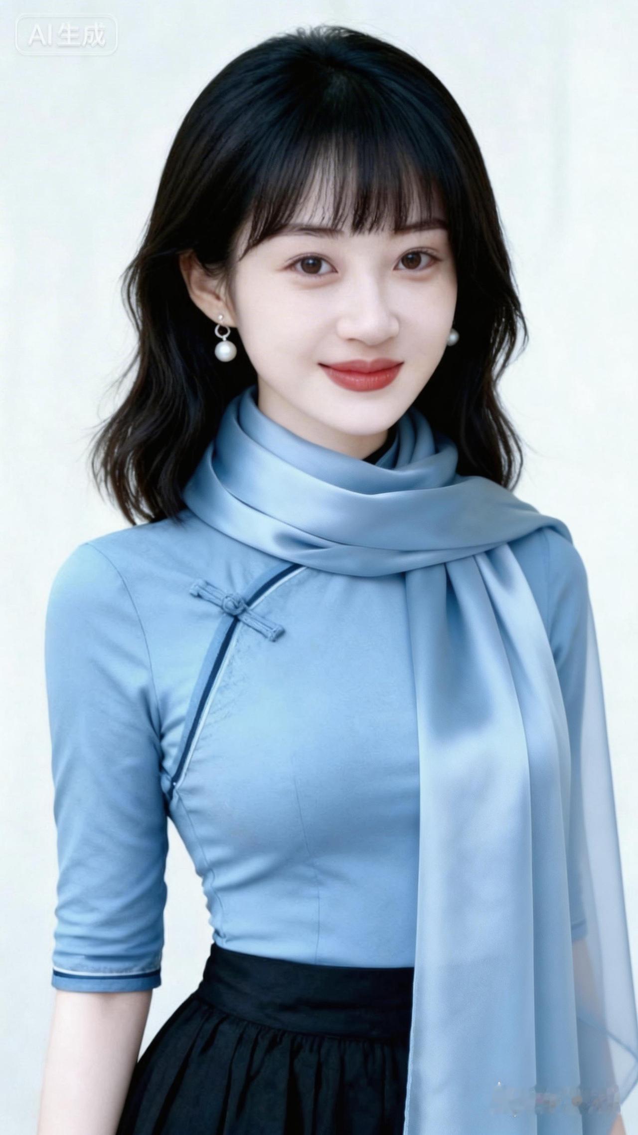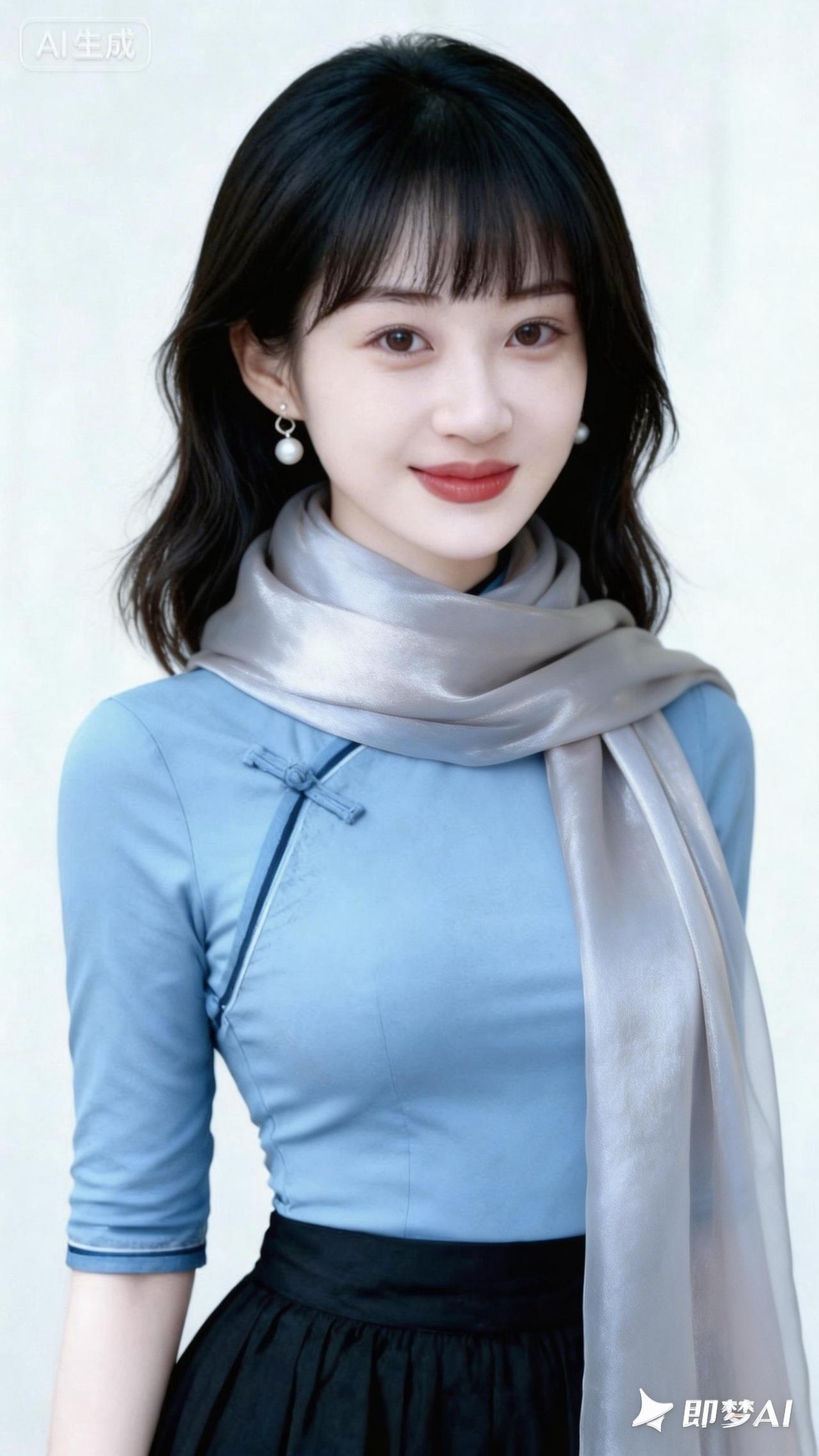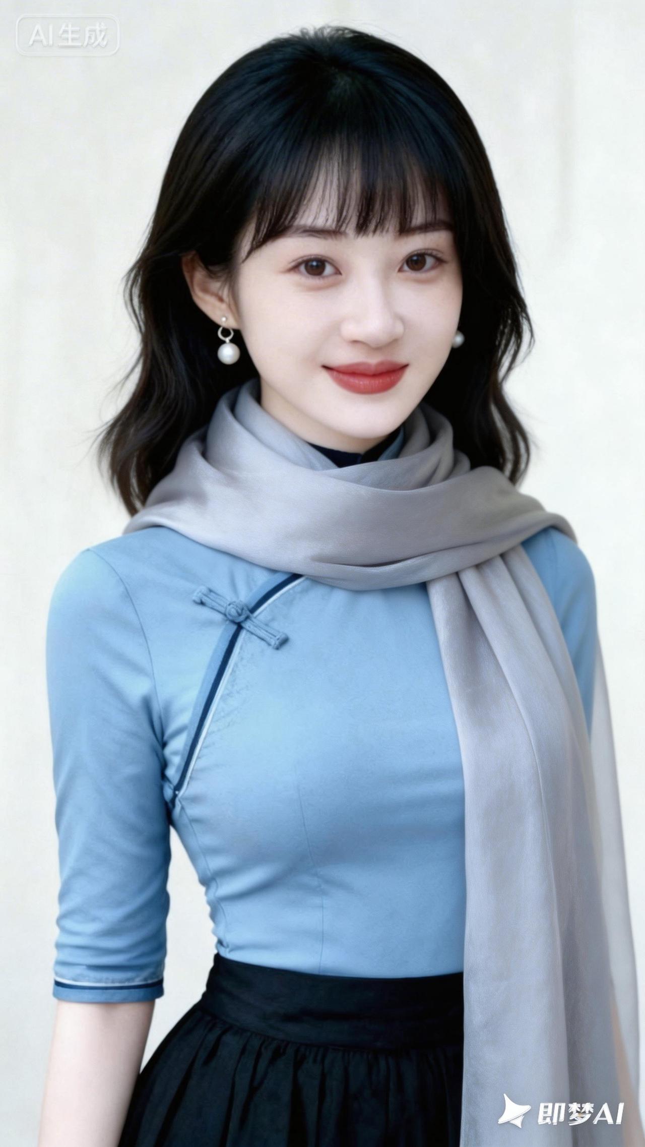 温柔甜美的气质穿搭,浅蓝色上衣搭配灰色围巾,尽显优雅魅力!💕