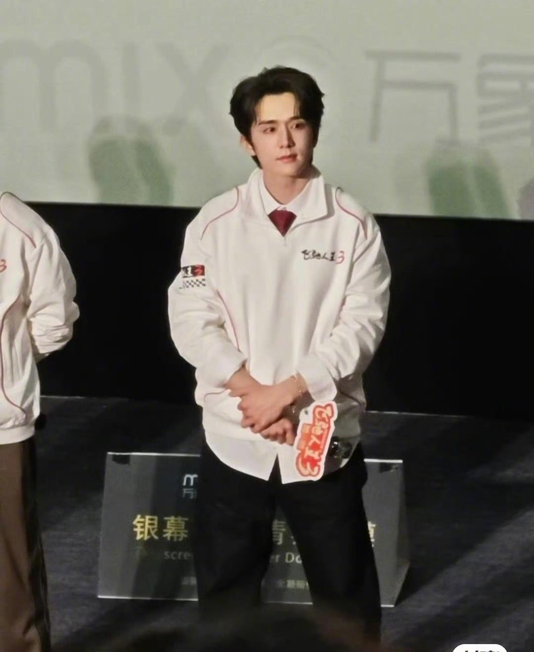 张新成线下帅成这样张新成路演帅成啥了啊张新成飞驰人生3线下路演帅成啥了啊h白色外套黑色顺毛真的好清爽