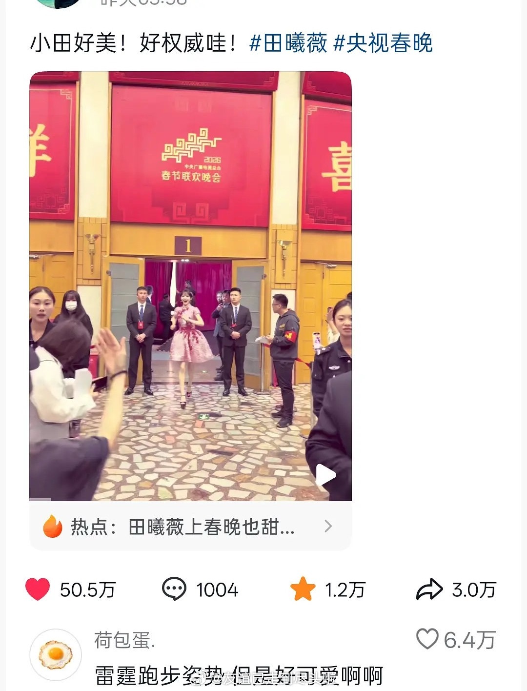 春晚第一个百万赞是田曦薇