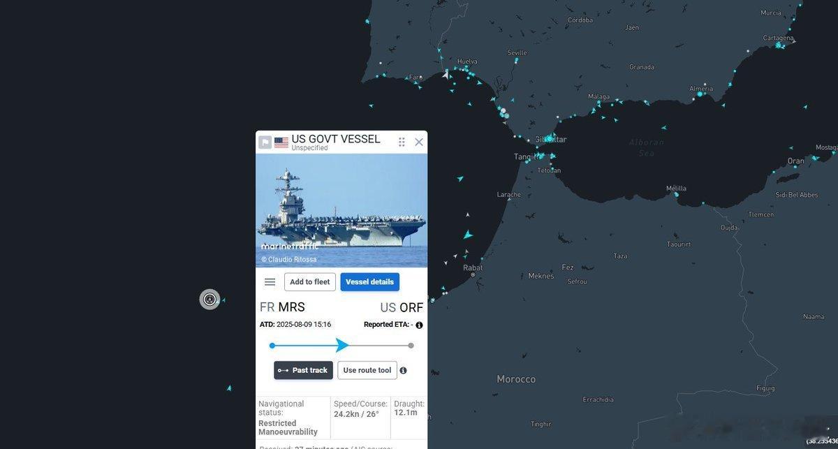 美国海军“杰拉尔德· R·福特”号航空母舰被发现在摩洛哥海岸附近。热点观点海外新鲜事