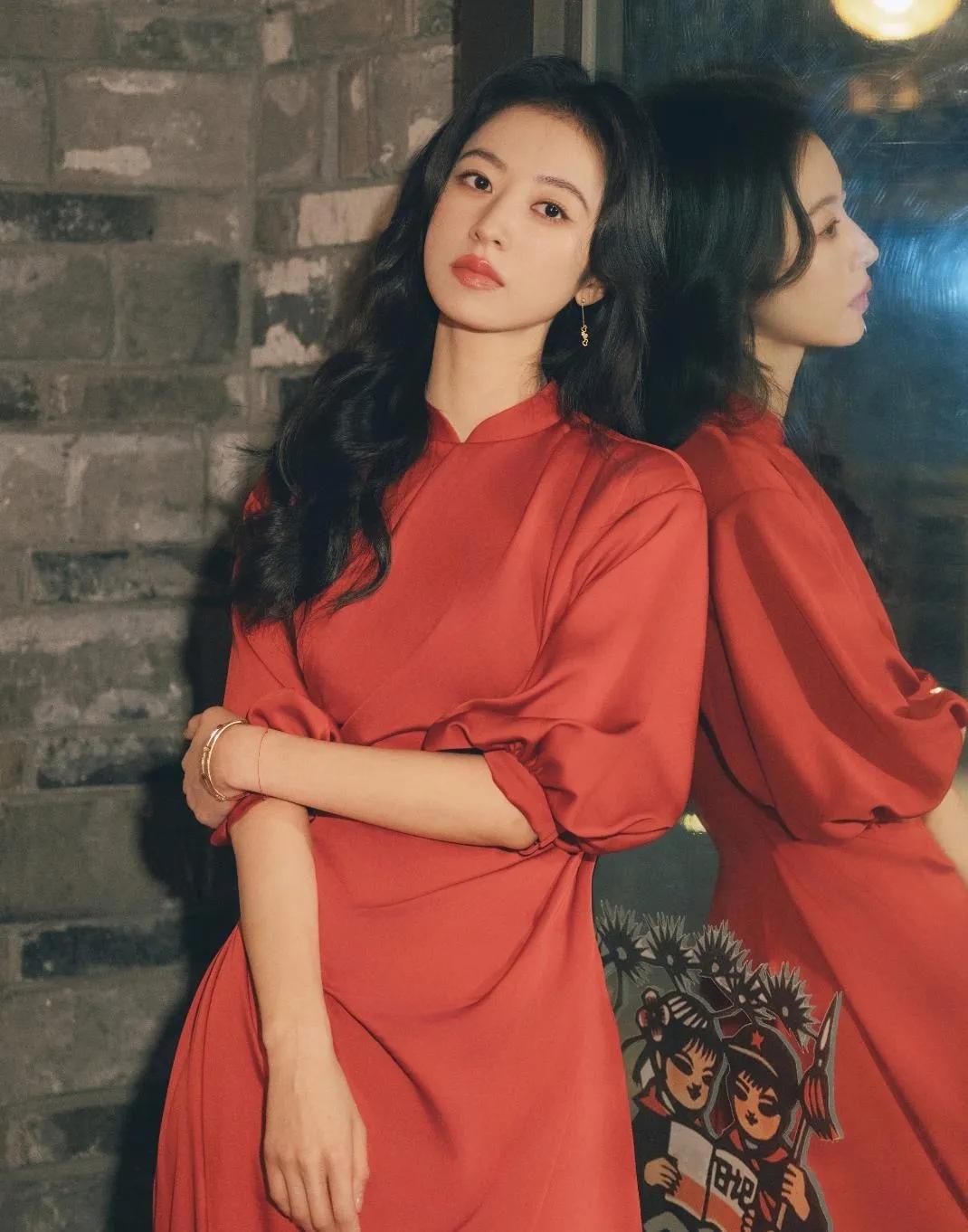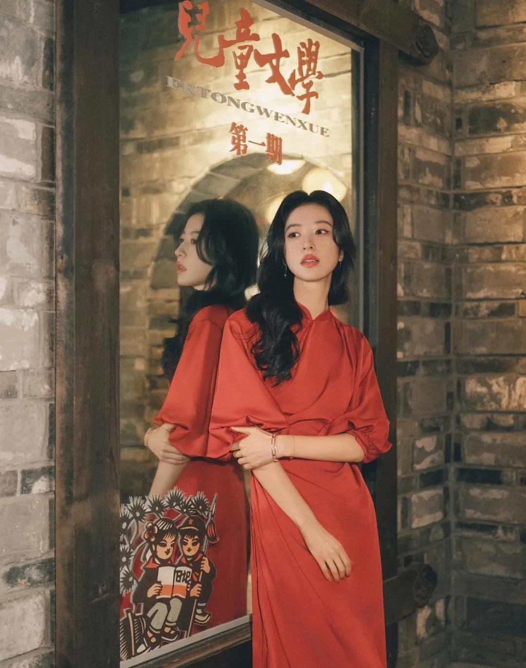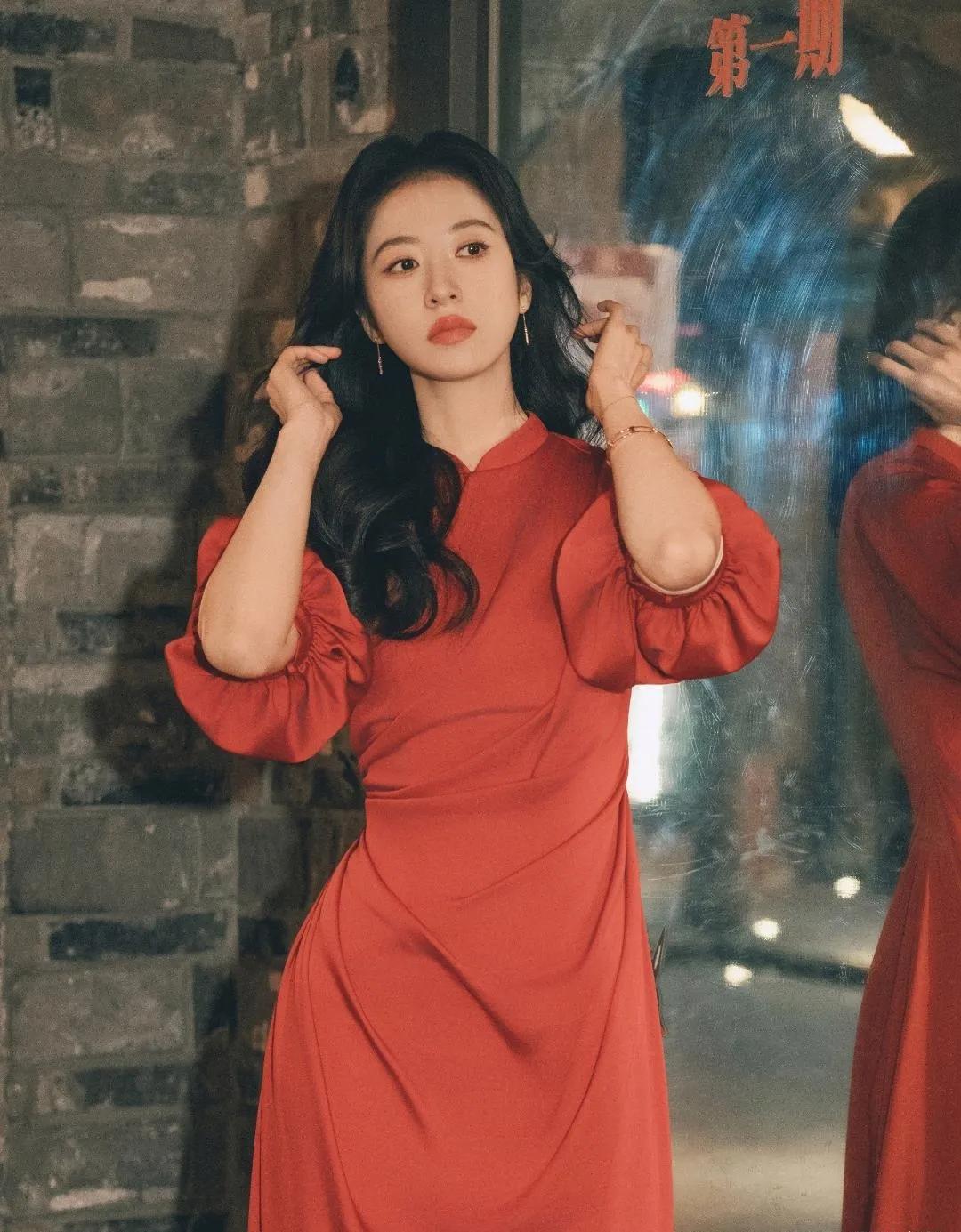 周雨彤这组红裙照,把新中式的美焊在身上了🔥 周雨彤这身红色新中式裙装真的太绝了! 复古砖红墙面+复古橱窗,衬得她整个人又温柔又有故事感。 立领+泡泡袖的设计,既有旗袍的韵味,又不失现代感,把东方女性的温婉与大气拿捏得恰到好处。 大波浪卷发随意垂落,红唇点缀,每一个回眸都像从旧时光里走出来的美人,氛围感直接拉满! 周雨彤 新中式穿搭 红裙氛围感
