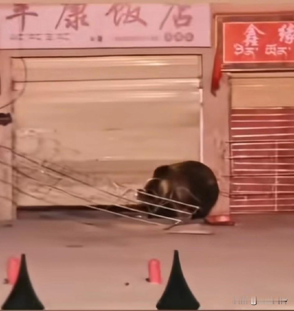 大年初一,西藏两只藏马熊狂捶饭店卷帘门,最后破门而入进入饭店找吃的,巡逻警车出现熊才逃跑。 店主人称:还好已回家过年,店内有食材,可能要提前回去清点损失。 它居然会开卷闸门,觉得吧,这种闯进城市的应该枪毙。在城市附近丢荒野上,总得杀鸡儆猴的。不然总会感觉人好欺负,后面会吸引更多的熊。还想去西藏玩呢,都是这玩意,谁还敢去