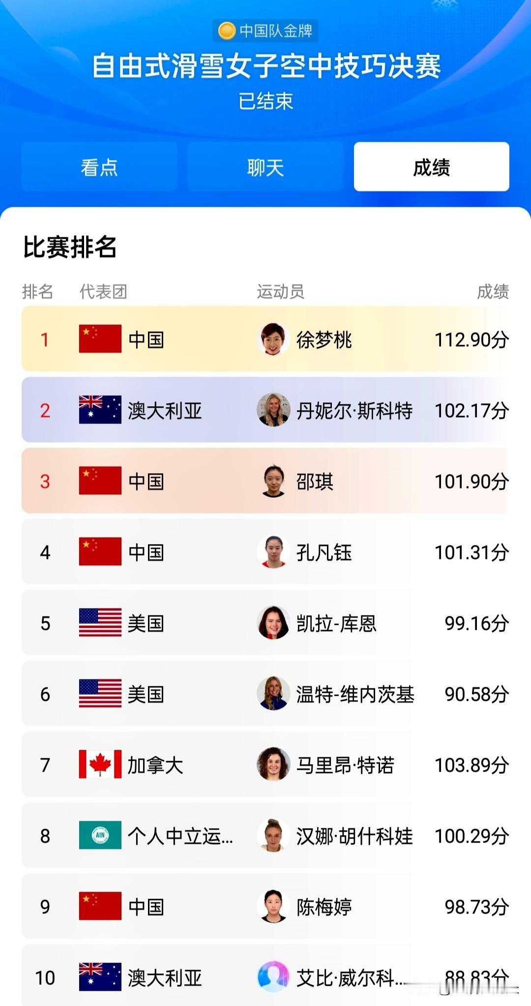 谁能解释下,加拿大选手马里昂特诺103.89分为什么没拿到银牌,排名仅第7位。 看米兰冬奥会自由式滑雪女子空中技巧决赛的得分排名,徐梦桃以112.90高分夺冠,这毋庸置疑。但澳大利亚选手最后一跳102.17分夺银,还没有加拿大选手分高,这怎么解释?