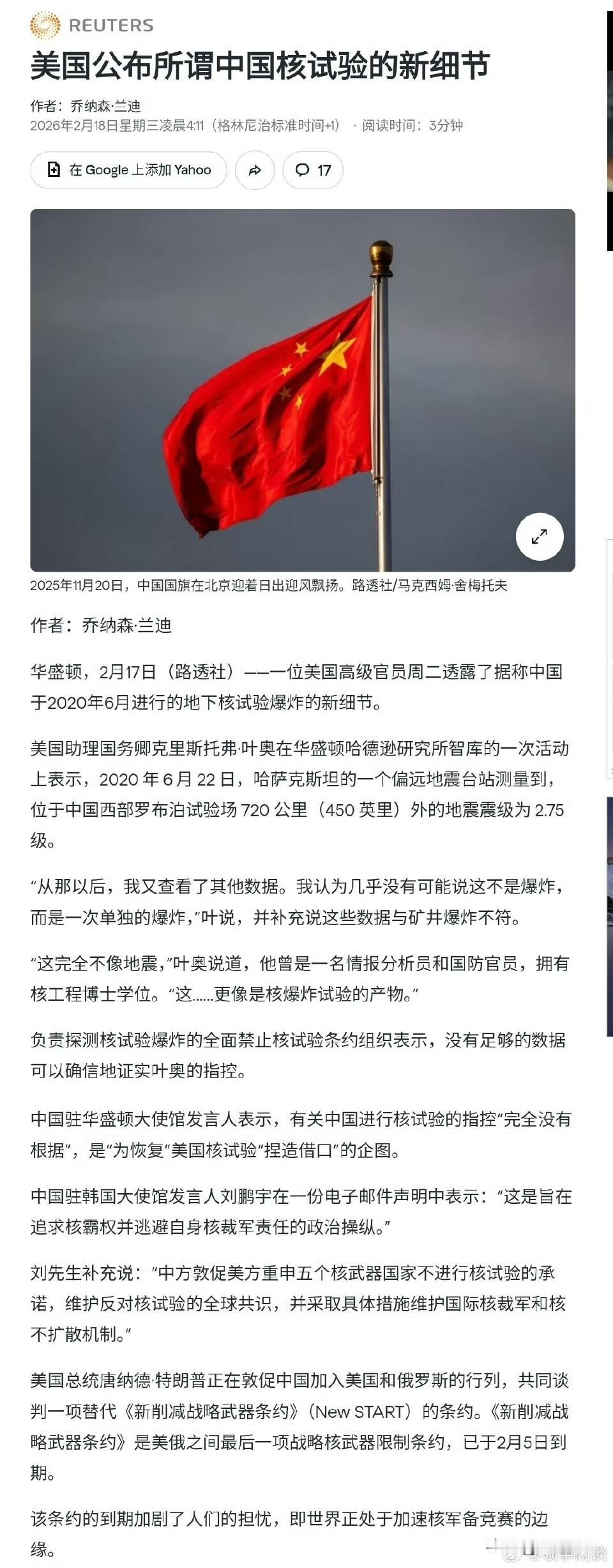 又开始虚空造牌了 在造谣中国在加勒万河谷冲突后进行核试验后 美国又编造出所谓的中国核试验细节 这么做的目的很明显 一是在军事竞争无法追上中国后,企图用舆论战把中国拉入限制军备的陷阱里 二是抹黑中国,为美国重启核试验找铺垫 美国人喜欢虚空造牌,每次我们都是解释再解释,最好的防御就是进攻,多几个牢A,多出几个斩杀线这样的命题,才是对美国最强的反击