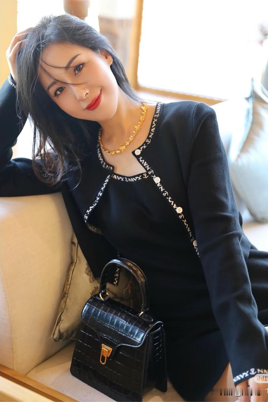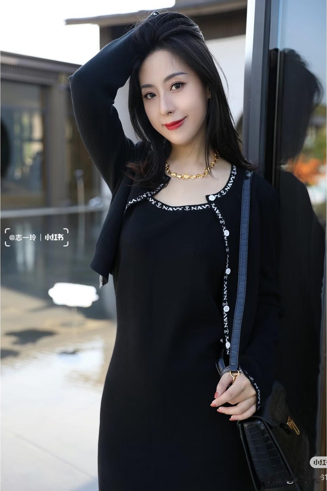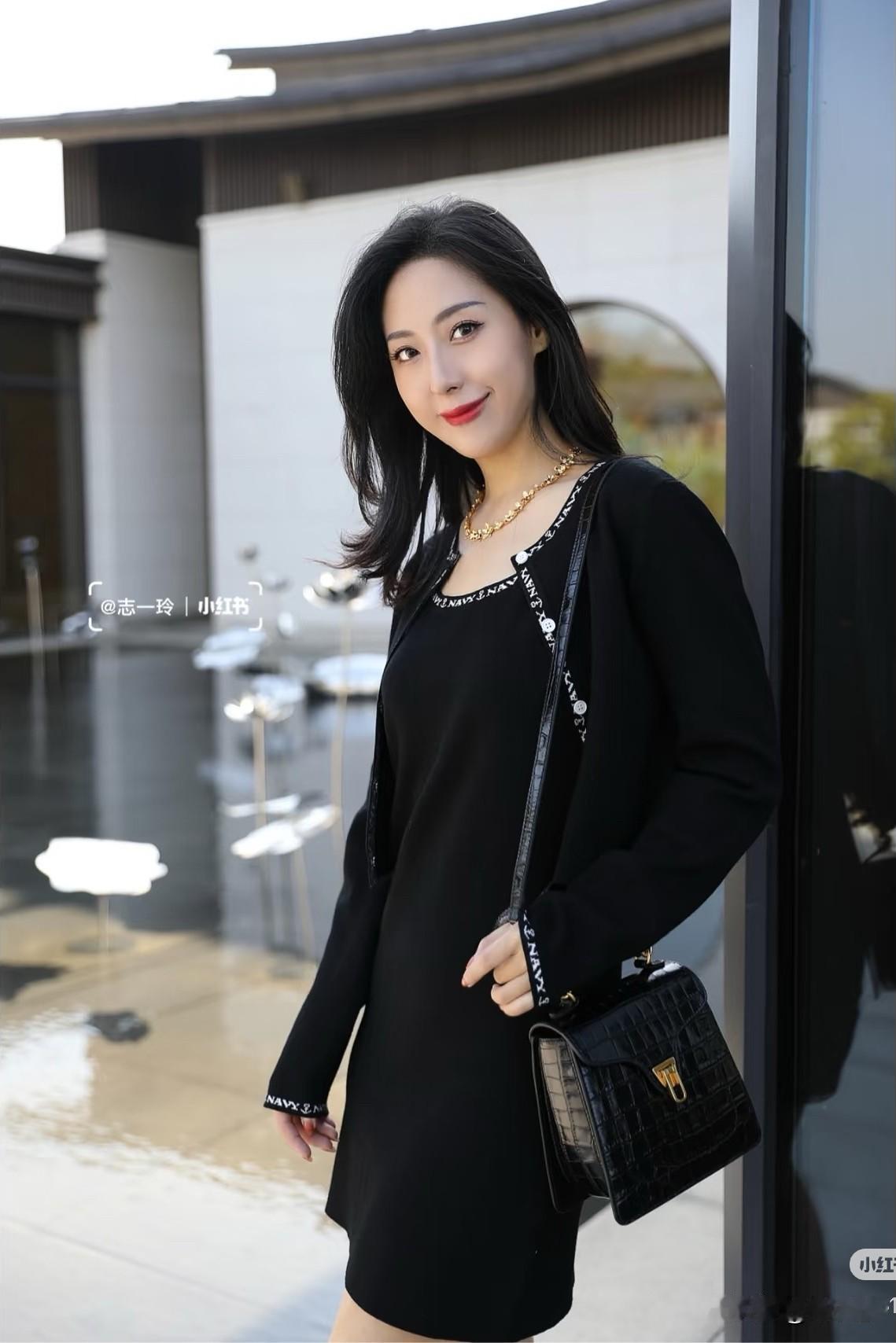 秋天怎么能没有小香风套装~ 针织两件套连衣裙省去了上下搭配 用字母图案作为装饰条,简约高级