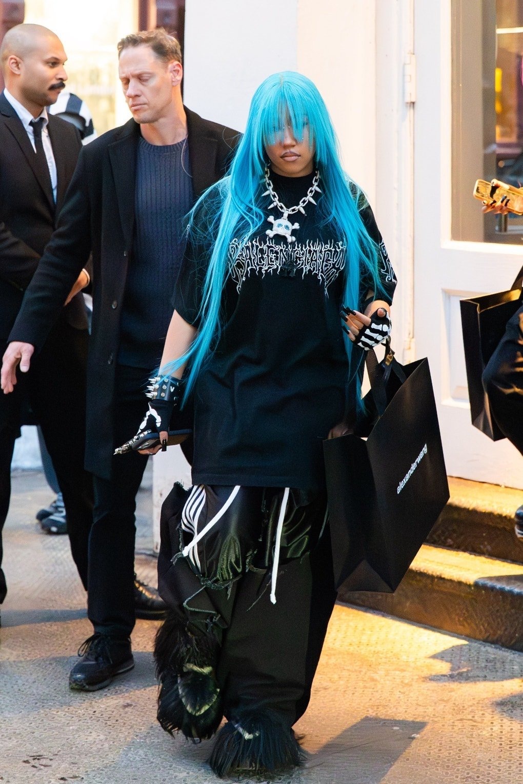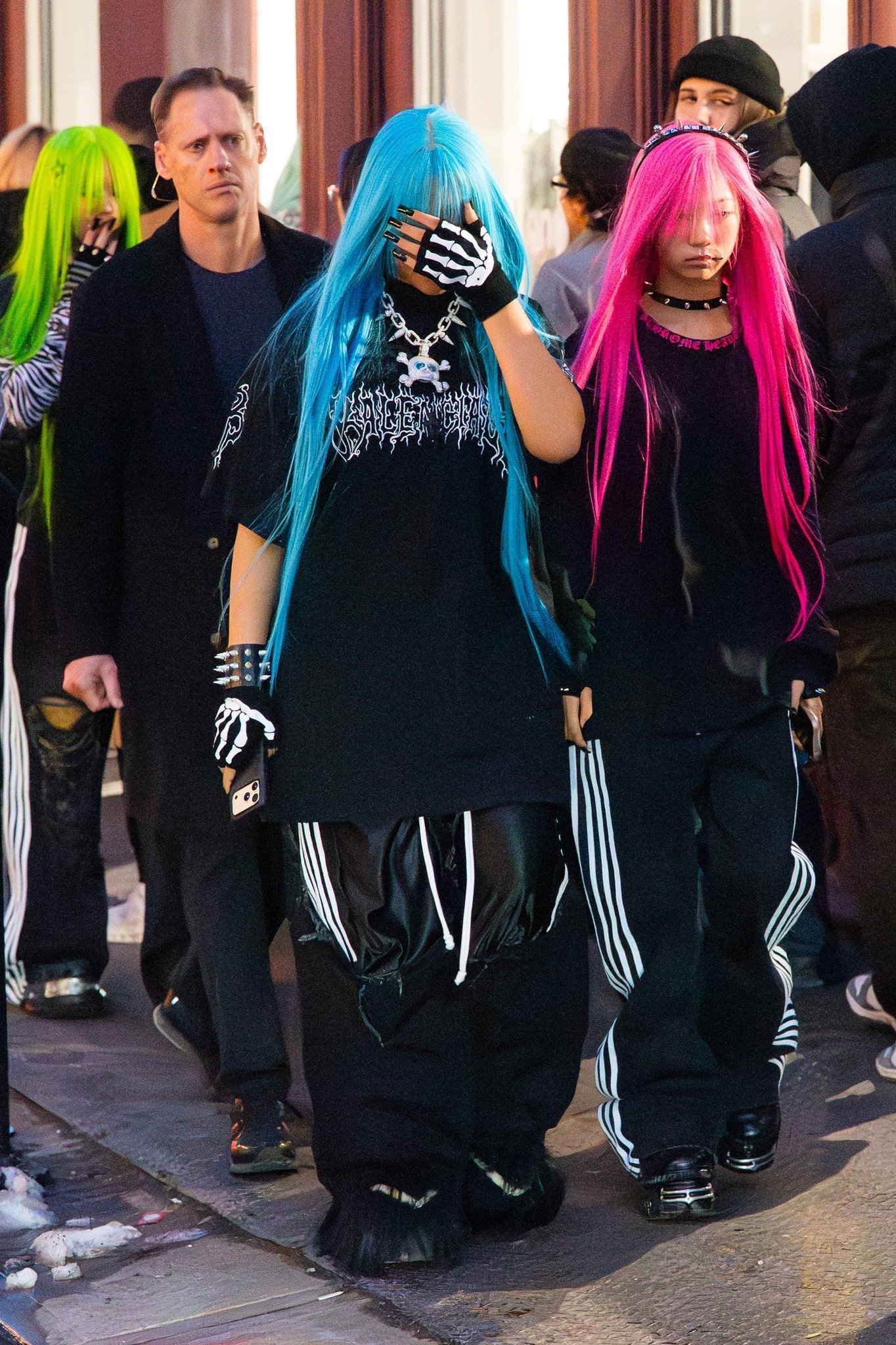 North West和朋友们“五颜六色”最新街拍走红,有网友给侃爷P了一个小西北同款蓝色发型🆘