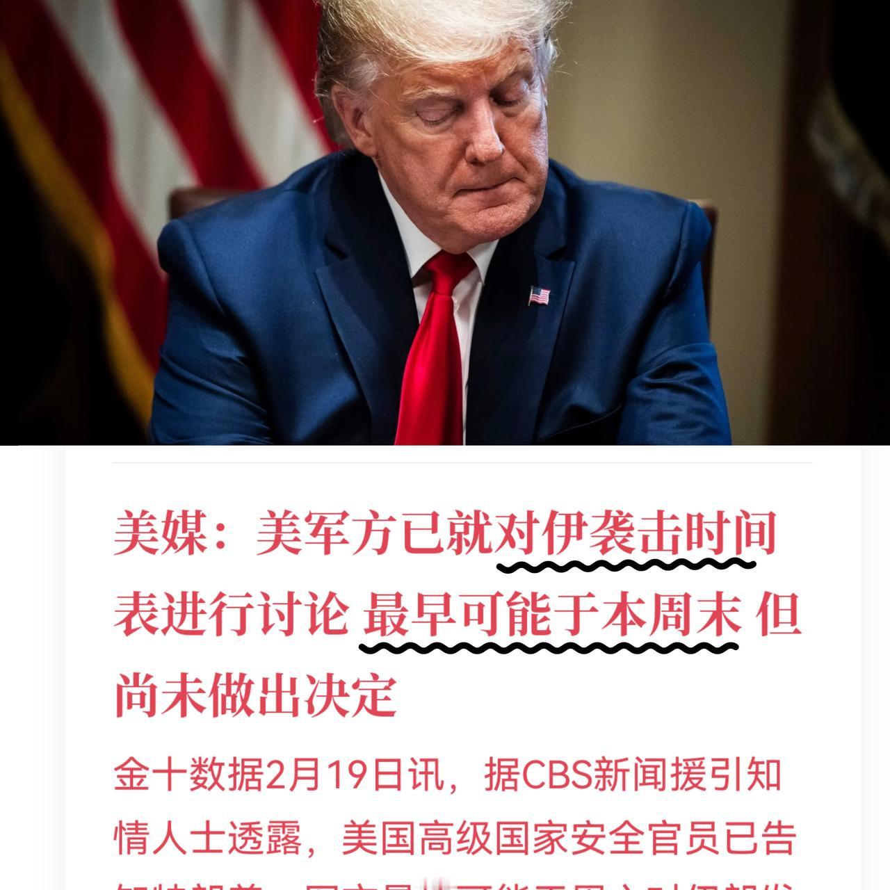 突发!美军最快本周末要打伊朗?特朗普还没点头! 美国媒体CBS爆料说,军方高层已经跟特朗普汇报了,打伊朗的军事计划都摆桌上了,最早这周六就可能动手! 不过先别急着下定论,特朗普还没最后拍板,时间也可能推到下周。 有个细节挺:未来三天,五角大楼要悄悄把中东部分人员撤到欧洲或美国本土。说是“常规操作”! 这就是典型的战前准备。既为可能动手清场,也为防伊朗报复。但说实话,这种消息放出来,往往也是心理战的一部分真打还是吓唬,就看特朗普怎么想了! 大家怎么看?
