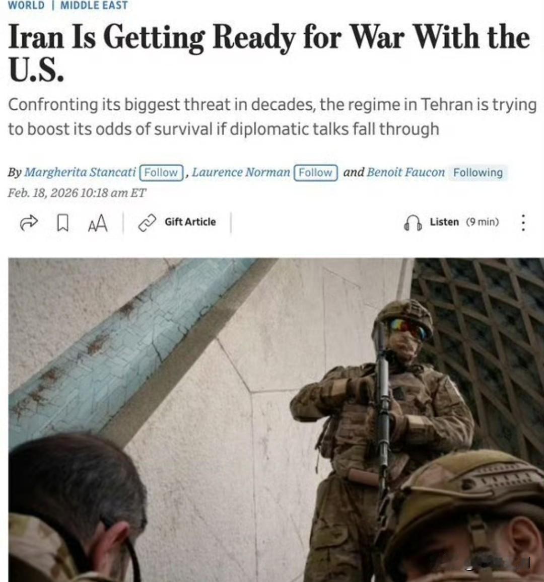 伊朗正在公开准备与美国开战,以防谈判破裂。 伊朗正在采取的行动: 向霍尔木兹海峡部署兵力 重启"马赛克防御"(分散化军事指挥体系,以在领导层遭打击后仍能生存) 加固核设施(伊斯法罕、镐山) 强化防空系统 扩大国内镇压以防止动荡 来源:《华尔街日报》