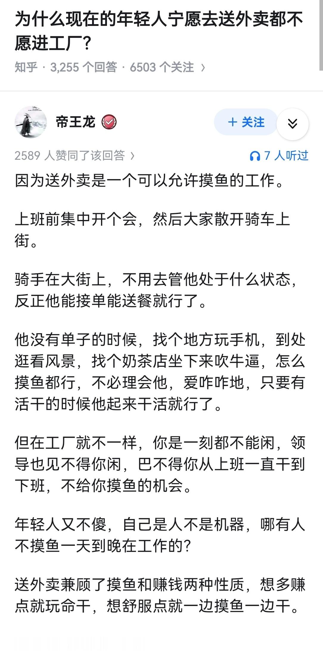 为什么现在的年轻人宁愿去送外卖都不愿进工厂?