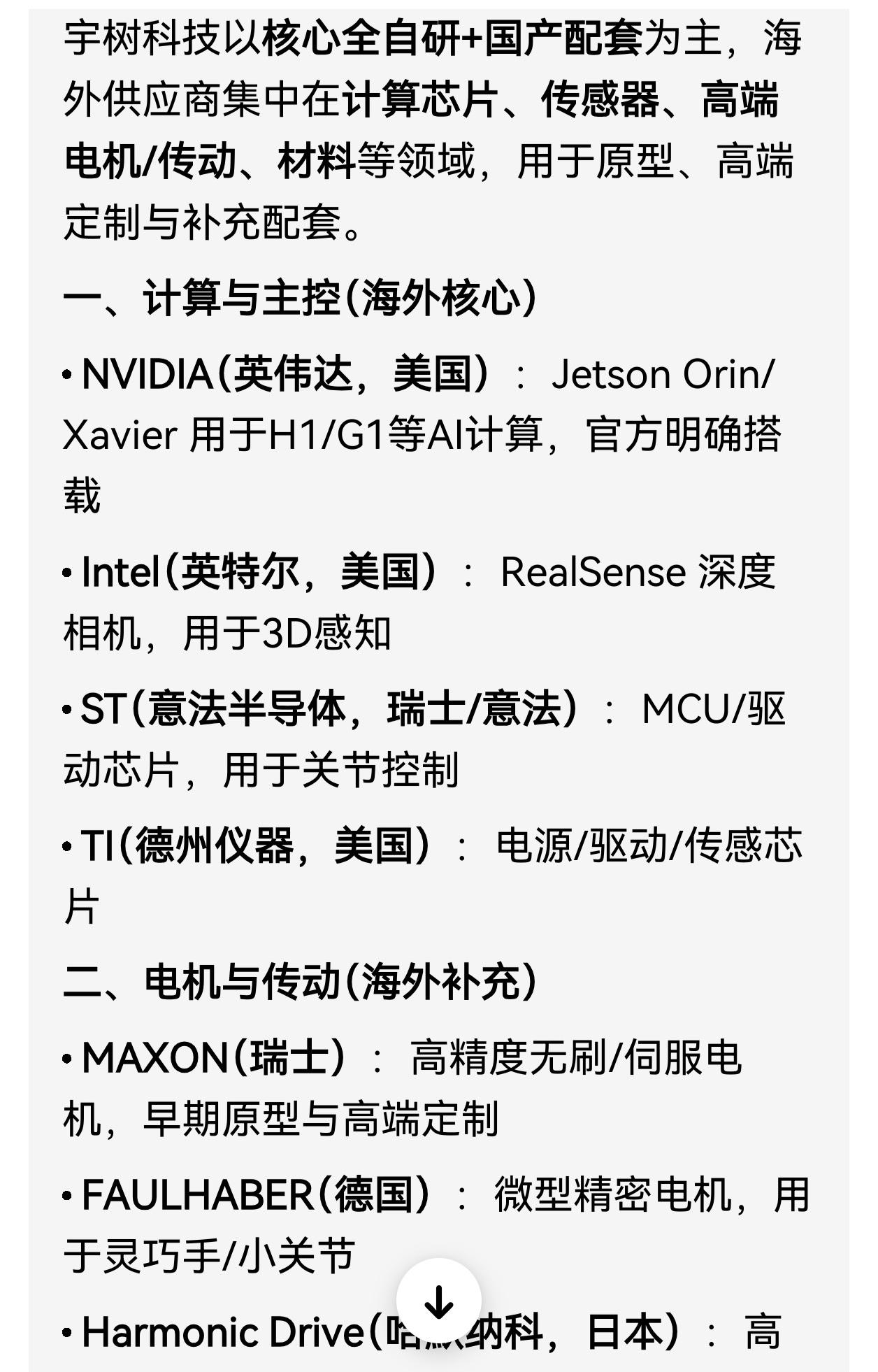 春晚大秀肌肉后,宇树科技就被美国拉入黑名单了? 据了解,美国国防部以“涉军”为由将宇树科技列入1260h中国军事企业清单,大概的意思是说宇树科技机器人有军民两用的潜力,也就是说还没用在军事上就遭遇拉黑。 列入清单后,来自美国企业的投资,供应链,市场拓展都将受到限制。我查了一下,现在宇树科技的投资者都是国内企业,不需要美国的钱。 但是,在供应链方面可能就受到影响了,宇树科技机器人搭载了英伟达的AI计算芯片,英特尔的深度相机,德州仪器的传感芯片等等,这些都没有完全被国产替代,一旦被限制,短期的影响还是很大的。 不过,中美在人工智能,机器人等领域的激烈竞争已经是白热化了,这样的情况应该早就预料到了,中国企业也有准备,美国靠拉黑制裁手段,阻止不了中国科技的崛起,反而会让我们加快自研的步伐。