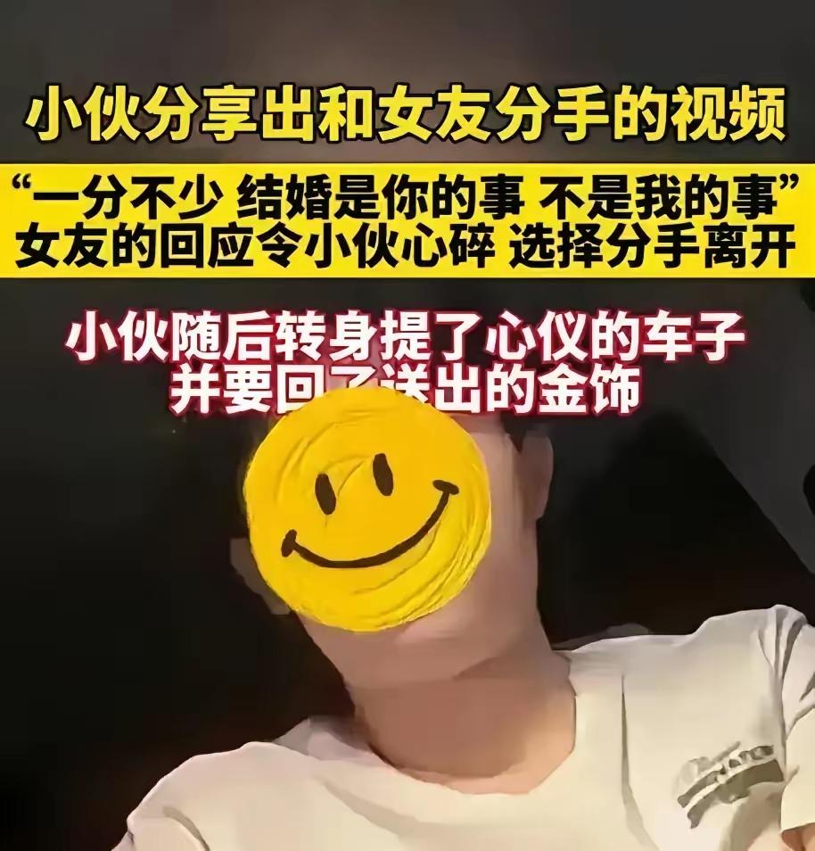 小伙谈彩礼事件冲上热搜。 ​女方家开口28万8,说少了没面子。 ​男方直接回怼:我工作五年攒了15万,全给你家也不够,难道去借高利贷? ​视频里小伙红着眼说不是不想给,是真拿不出来。 ​评论区炸了,有人骂女方卖女儿,有人劝小伙放手。 ​我看着挺难受的,结婚本来是喜事,现在变成讨价还价。 ​感情被标价,爱情成了交易,这婚结得还有什么意思。 网友们表示 古代取妾才给彩礼,相当于买断。娶妻是聘礼,娘家是有嫁妆的,生老病死,日常所需自己带来的。过来做[比心]主母的 我哥们做的更好,直接给女方看微信,30万零钱,直接给捞女说:我跟别人不一样,我有,但我不想给。我的态度是:你不配。哥们说了,谈崩了没好话,所以杀人必须诛心。 主播说彩礼不是不能要,这句话本身就是错的。最高法明确规定不能索要彩礼,否则违法。索要彩礼本身就是婚姻买卖行为嘛,不能惯着坚决抵制。 有个段子不是说过,女方要多少彩礼都可以,让女方出面担保借贷,婚后男方还贷。啥时候离婚,没有还完的贷款就由女方还 15万不少了,我去年国庆刚结的婚,买房加婚礼加上到现在九个多月的产检费都没花十五万,才花了12万左右。买房首付10万,结婚大家随的礼付了酒席钱还剩了几千,产检到现在七千左右,没要彩礼,没有嫁妆,就简简单单的在一起了,现在过的也挺好,娃还有几天就生了,我估摸着生完娃养到一岁差不多能花15万。 彩礼,是礼也是理,对方能承受的范围内已经给到最多了,我觉得为了面子不去考虑这个人本身的话,不能说谁的对与错,就是不适合了,分开也没什么不好的。看一个人适不适合结婚或者说筛选人,要看对方愿不愿把他最珍贵的东西给你,钱只是一方面,而且是很小的一面而已,一个身价百万的人,他给十几万的彩礼就说明他重视吗?一个人他只有几万身价,却愿意为了你去努力工作把十几万都给你,我们又怎么能说他的爱不值钱呢。。。他愿意把他现阶段最重要的东西给你,那才是最珍贵的,不同的阶段不同的东西,不能的人,这个最珍贵都是不一样的 大家怎么看呢