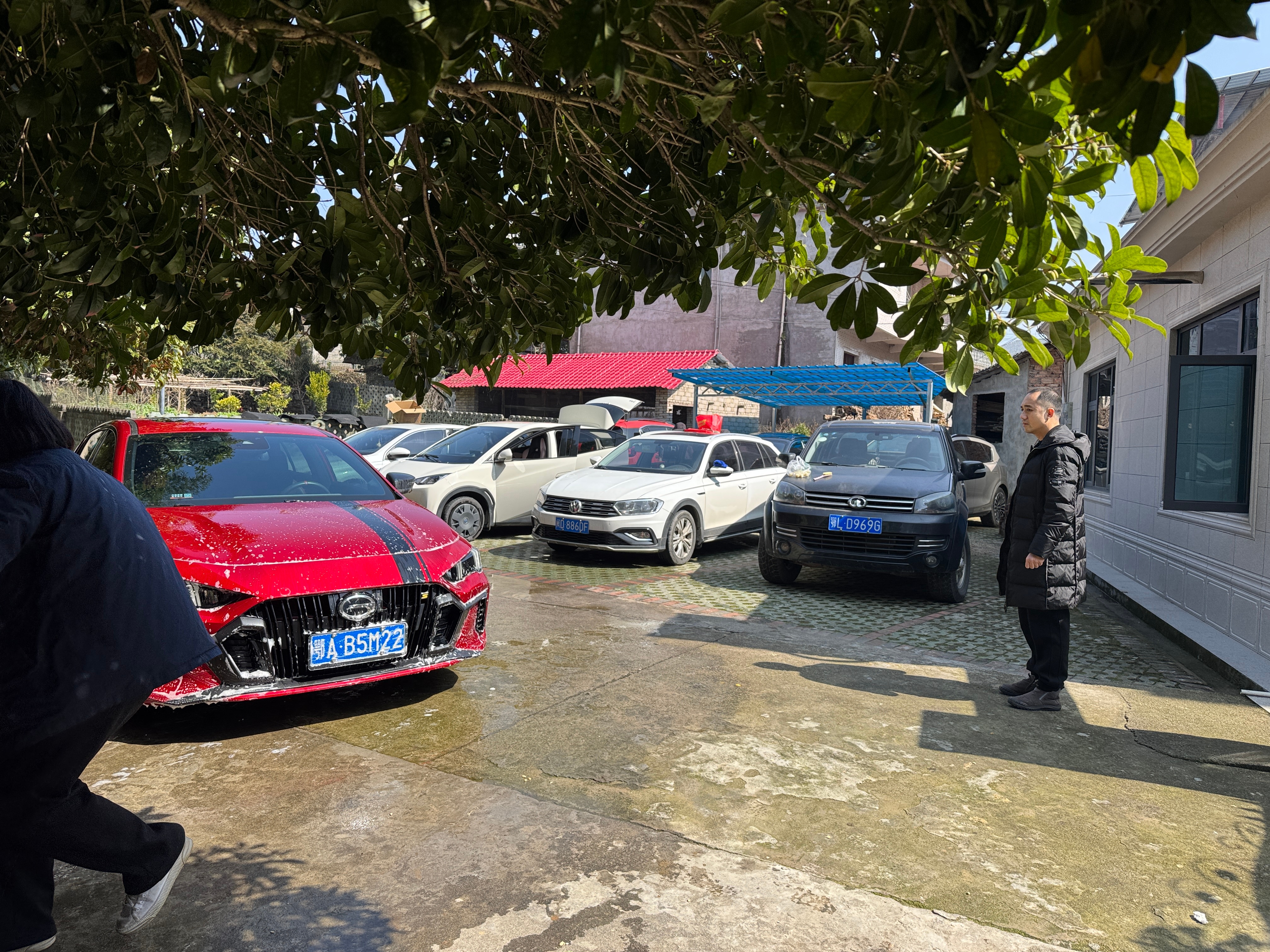昨天狗子(现改名咖啡☕️)接了一天的课,小孩子们都喜欢跟咖啡玩,咖啡也是一个非常聪明的狗子,随便小孩子整,昨天陆续到达了16台车,最高峰的时候,院子里停了13台车,昨天还收到一双本命年袜子,昨天穿了一天,今天换了,红色和白色对于直男来说等于没穿差不多