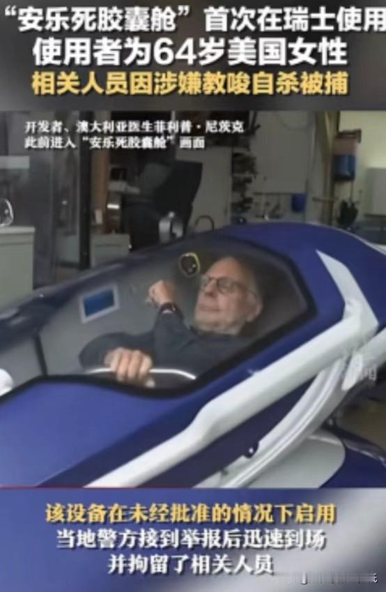 “安乐死是个大骗局?”瑞士提供的安乐死服务声称,患者只需要躺进自杀舱,按下一个按钮,就能无痛死去。但事后,在选择安乐死者的尸体上,却发现了令人深思的痕迹。 瑞士的“自杀舱”看起来像未来世界的胶囊房,操作流程特别简单,用户在线上填个表、拿到通行码,再花点钱买液氮就能自主结束生命,过程完全自动,没有医生把关,也没人认真核查用户的情况,这让一些本就承受巨大压力的人觉得解脱变得随手可得。 莉娜·霍华德是一位长期被疾病困扰的美国老人,她来到瑞士就是希望能够少受点苦安静离开,本来这项新型安乐死服务承诺让她舒舒服服地走完最后一程,可她在设备内的真实经历却让人不敢相信。 按照厂商的说法设备让氧气快速下降,人很快就会失去意识,最后安静死亡,但事实并非如此,监控画面显示莉娜长时间挣扎,肢体反复抽动,本该很快完成的过程她却反复经受痛苦,迟迟没能安然离世。 法医后来在她脖子上发现了异常的勒痕,运营方解释说那是肌肉病变,可医学专家根本不认同这种说法,他们认为这更像是人在极度反抗和本能求生时留下的伤痕,事件曝光后,警方立刻查封了自杀舱,并带走运营公司相关人员进行调查。 检方把案件定性为刑事调查不是单纯的医疗意外,这种处理方式在瑞士很罕见,瑞士正规安乐死的审批流程很严,病人要经过多位医生的会诊和心理评估,每一步都要反复确认意愿,整个过程费用高,周期长,但好处是每个环节都有人把关,不会让脆弱的人在冲动下做决定。 相比传统流程,自杀舱几乎没有审核,省略了医生和家属的陪伴,把生死问题交给了冰冷的机器,这让很多外地慕名前来的老人和病患成了无人照看的对象,也无法保证他们是真正自愿。 自杀舱的发明人坚持技术无害,消极面对各方质疑,在法律漏洞和道德灰区内不断扩张业务,但安乐死若变成买卖,谁还能保证生命终点有应有的体面与尊严? 背后还有更现实的问题,安乐死服务的高昂费用让有钱人能挑方式善终,而穷人则难有选择,数据显示,荷兰许多安乐死案例实际上并非完全自愿,瑞士也有大量国外老人专程而来,死亡旅游变成了生意,把选择生命终结的主动权交给了利益,忽略了社会和家庭本应有的温度。 真正的尊重生命,不是用冷冰冰的设备筛选出路,而是为每个绝望的人提供温暖的关怀和支持,这样的事件不只是技术风险,也是社会和伦理层面的警醒。 生命的最后一段路值得大家思考,死亡绝不能被商业或效率主导,缺乏温度的安乐死终究难以令人心安。 本文首发于卖行家的小报纸。
