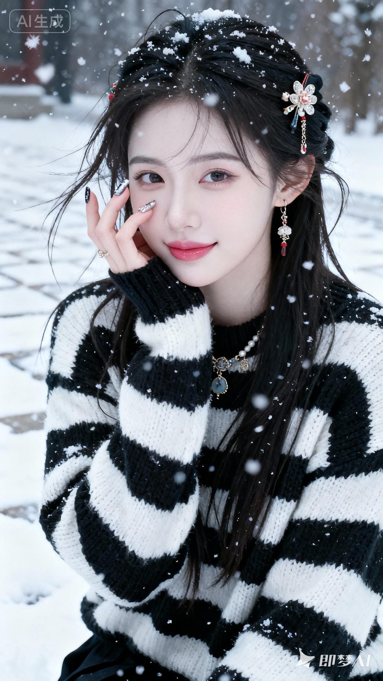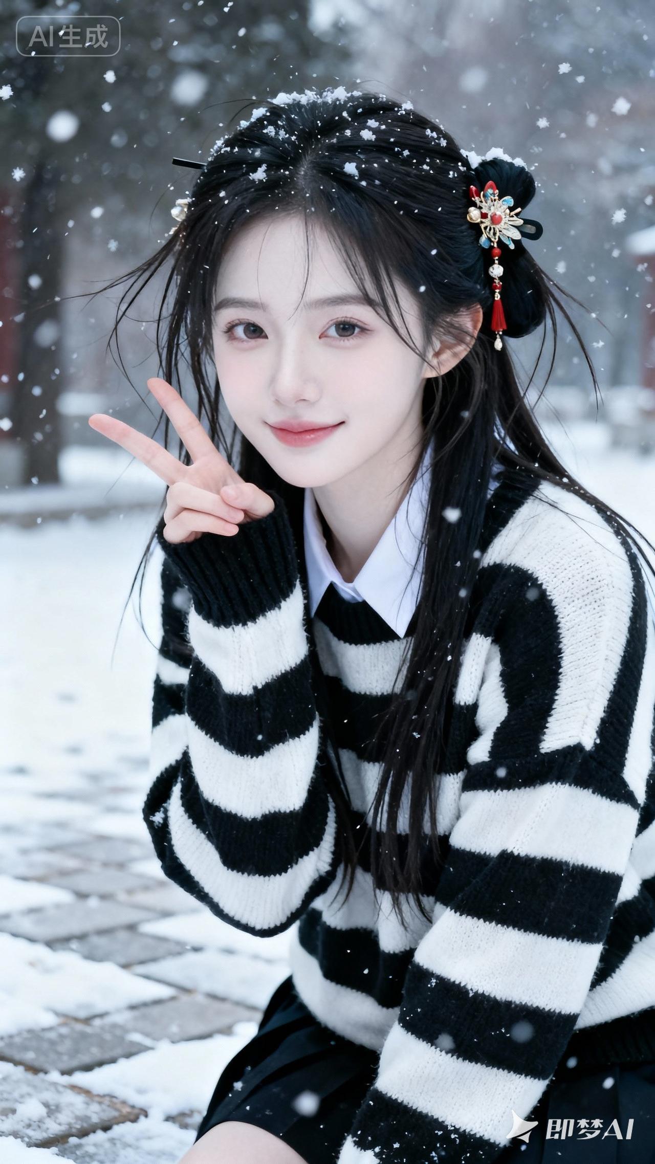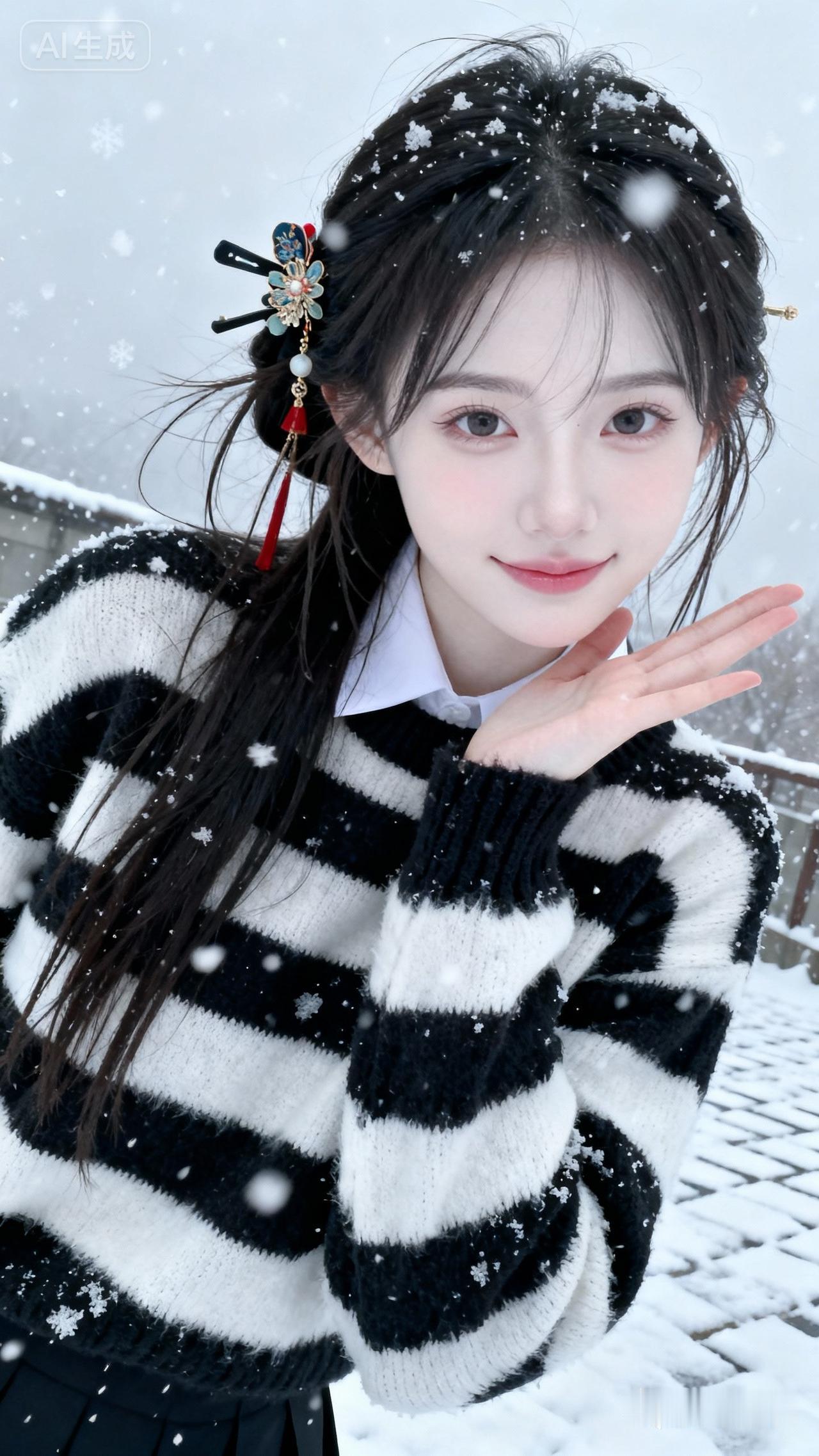 雪中赏松的雅人