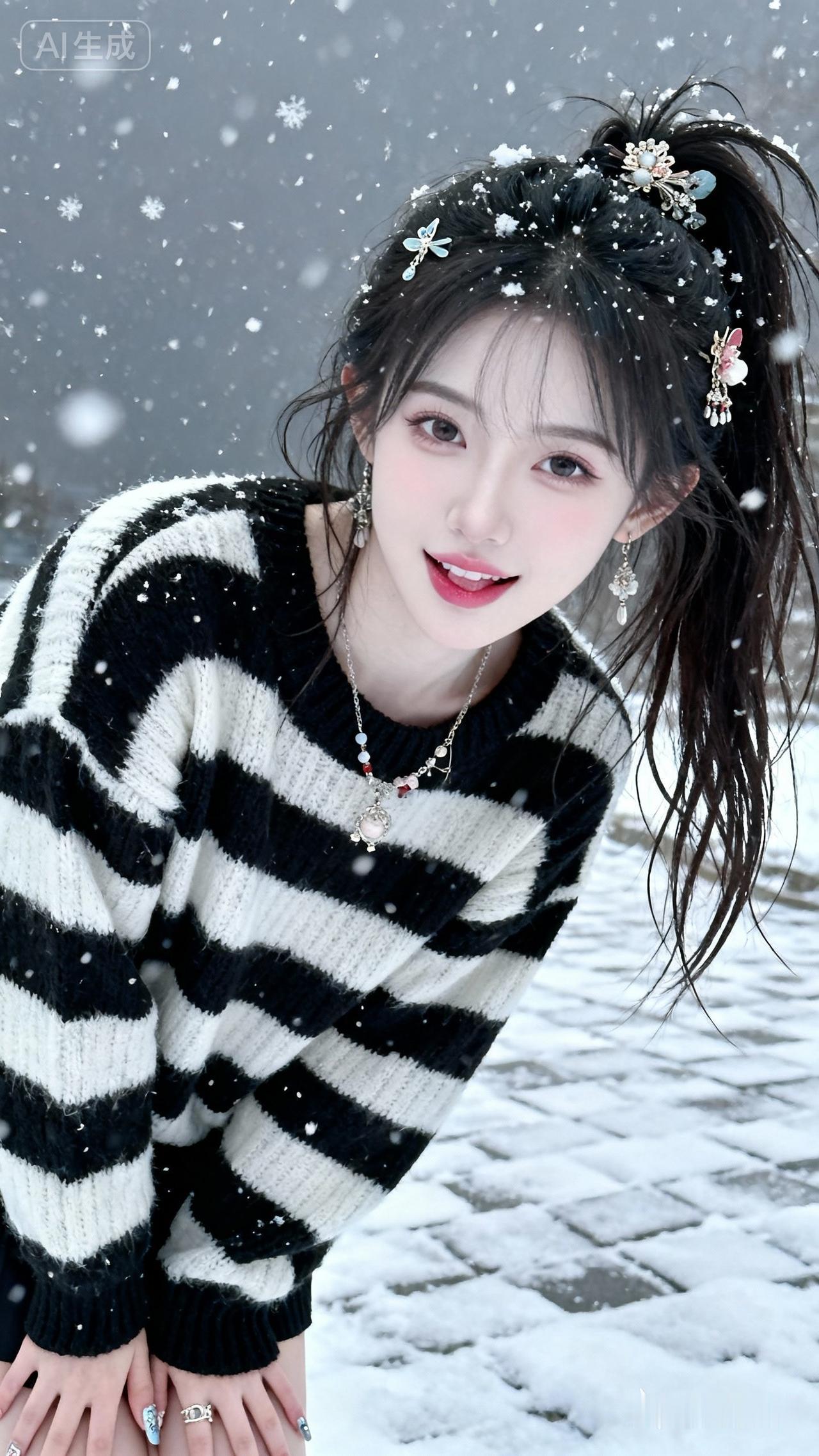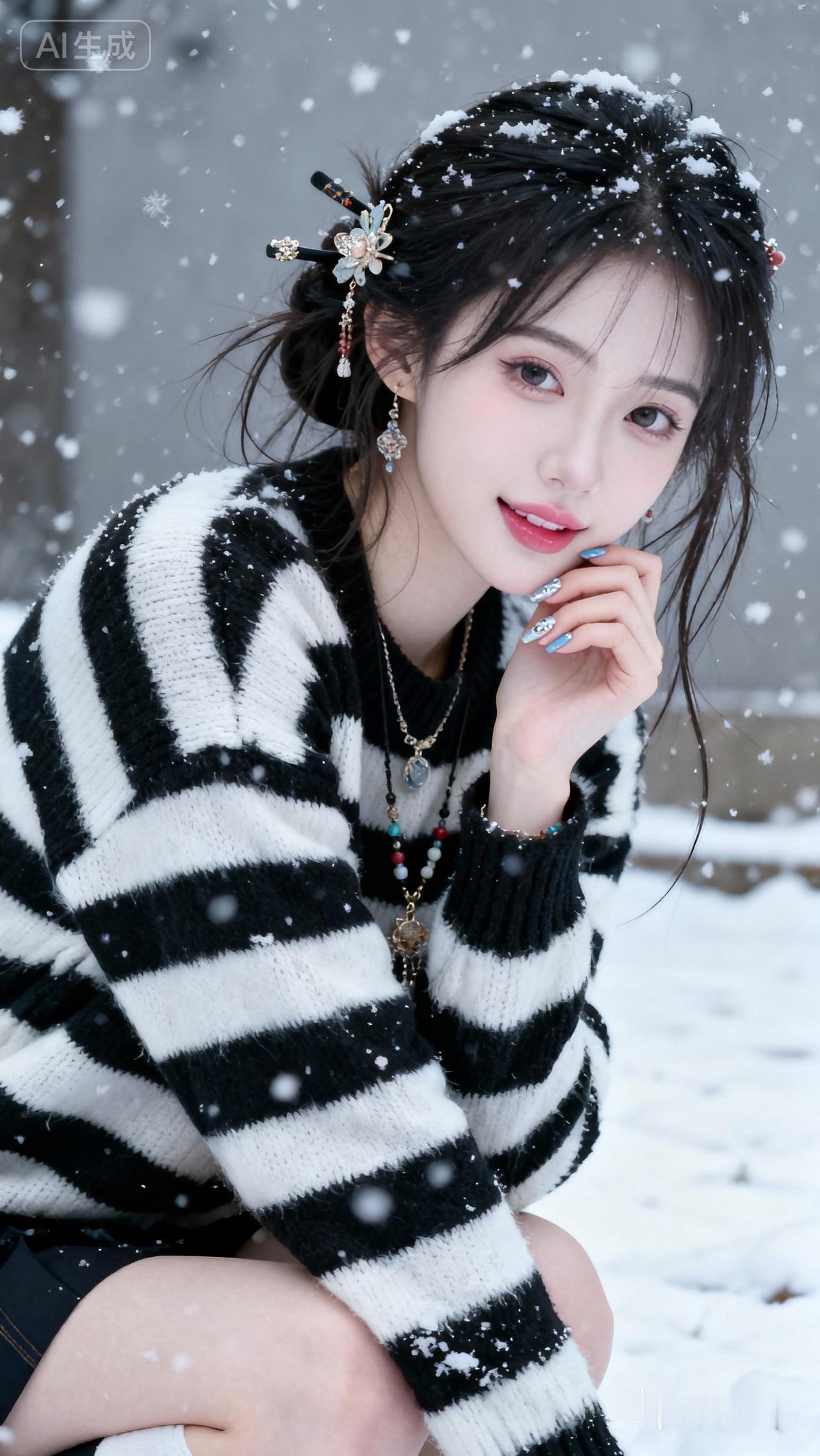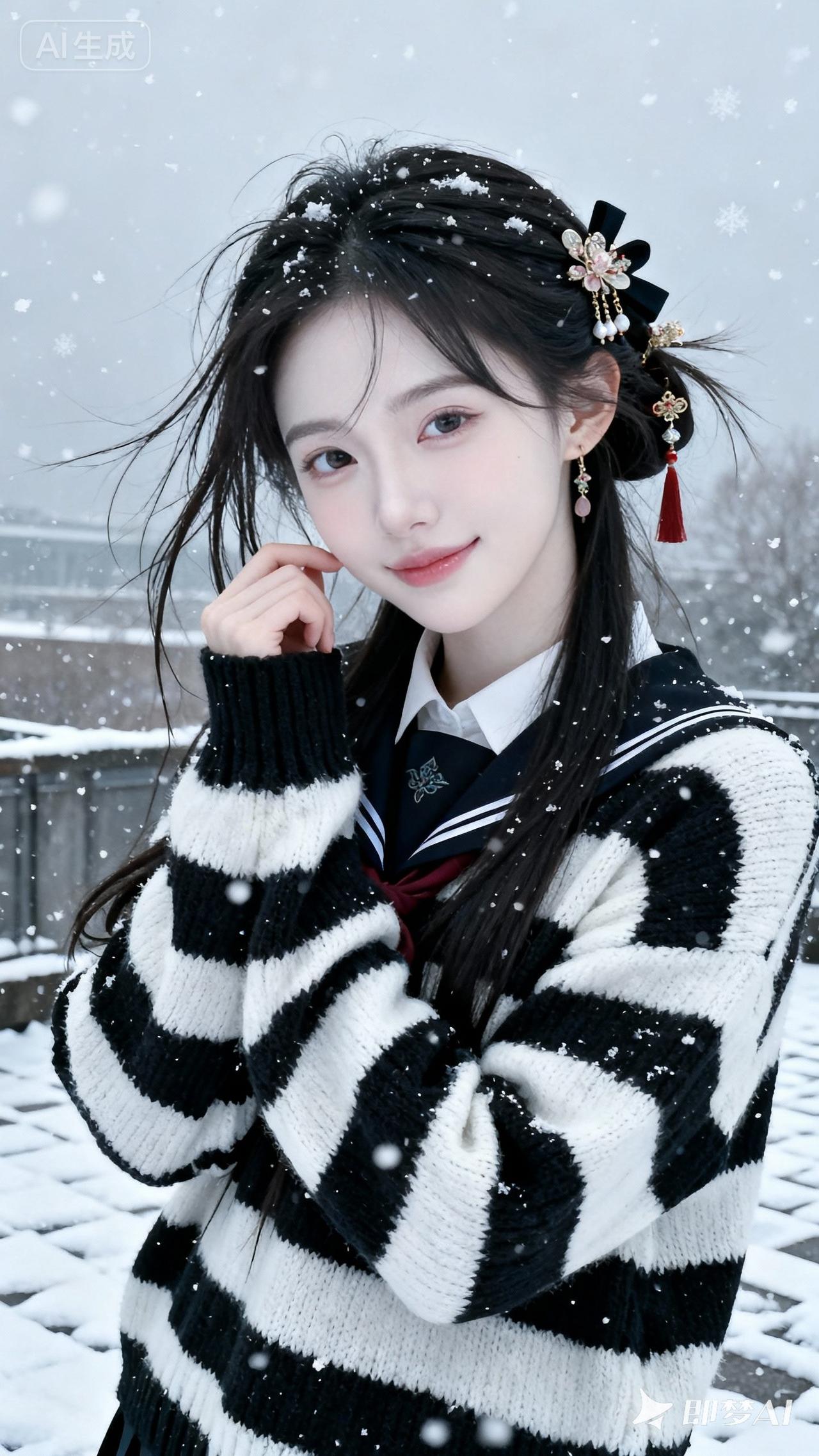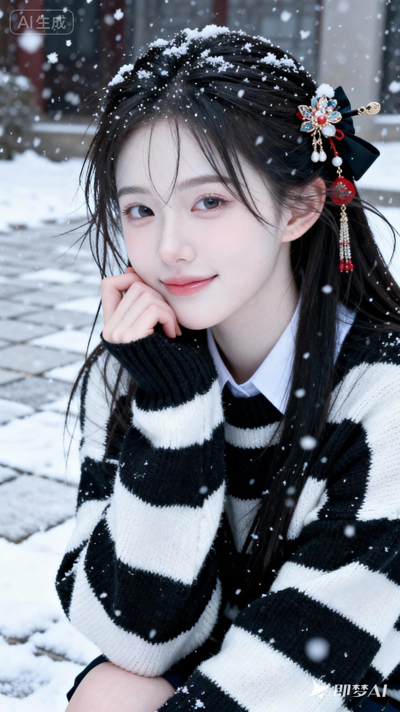 雪中赏松的雅人