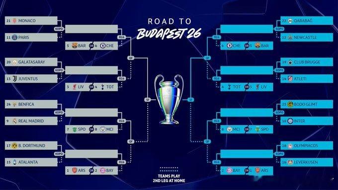 利物浦欧冠联赛16强赛的潜在对手: