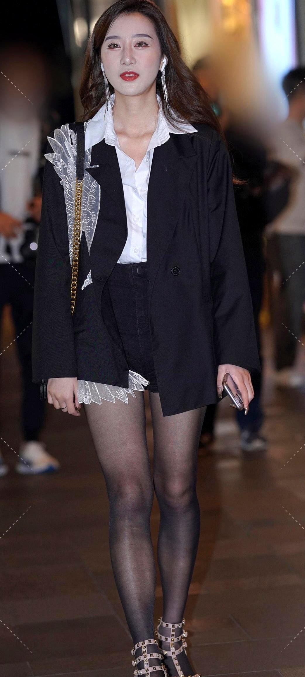 都市酷女孩穿搭指南:黑色西装外套+白色衬衫+黑色短裤,时尚又干练!