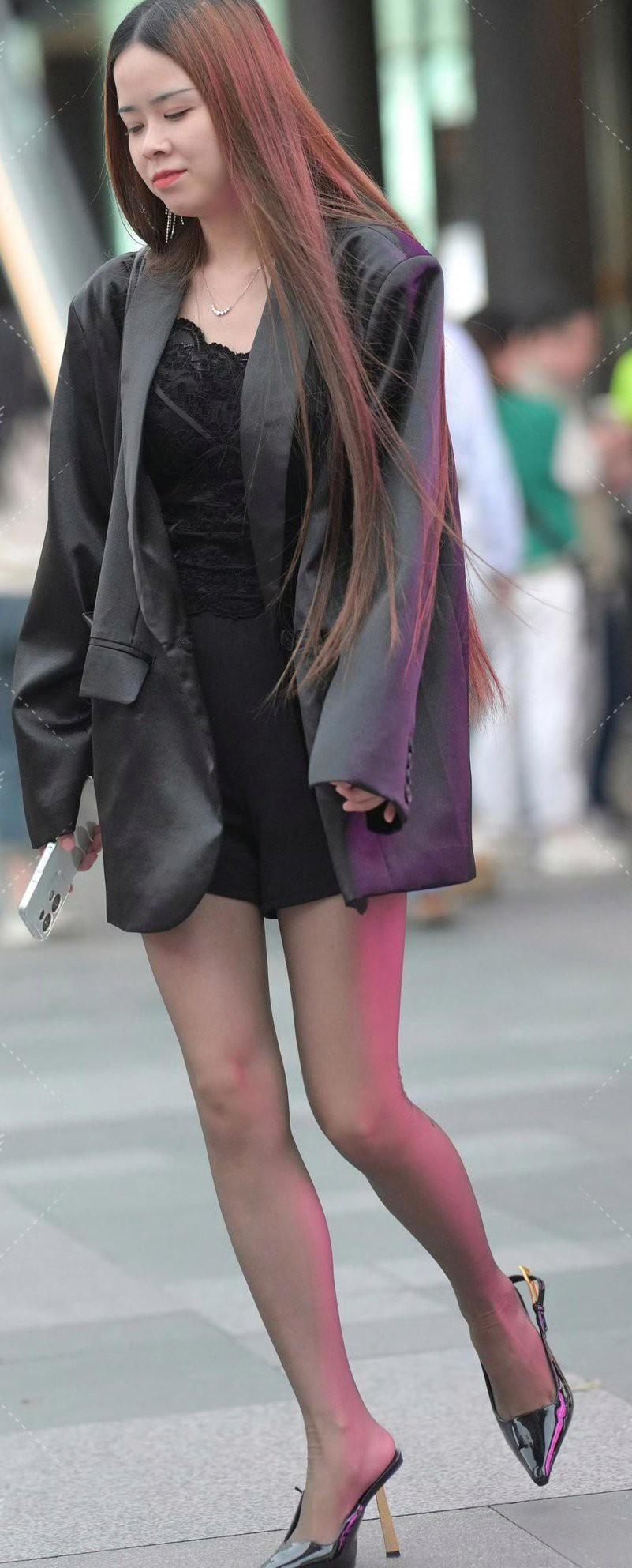都市时尚风,黑色西装搭配闪亮高跟鞋,优雅出街!👠💃