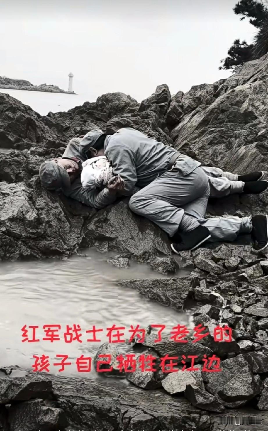跪拜先烈,致敬英雄。 两名红军战士为了保护老乡的孩子,自己牺牲在江边,这时还隐约听到孩子的哭声。 红军长征牺牲惨烈,饥寒交迫、战伤疫病,无数英烈埋骨征途。