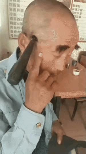 老头的脑袋上长个什么东西?看了半天也没有看清楚,不像是从脑子里长出来的东西,好像是一个什么东西扎到了脑袋里,情况都已经这么严重了,为什么不到医院呢?真不明白,这东西是怎么扎进去的?这么大岁数了,可不要不当一回事儿,赶紧到医院,千万别耽误了!