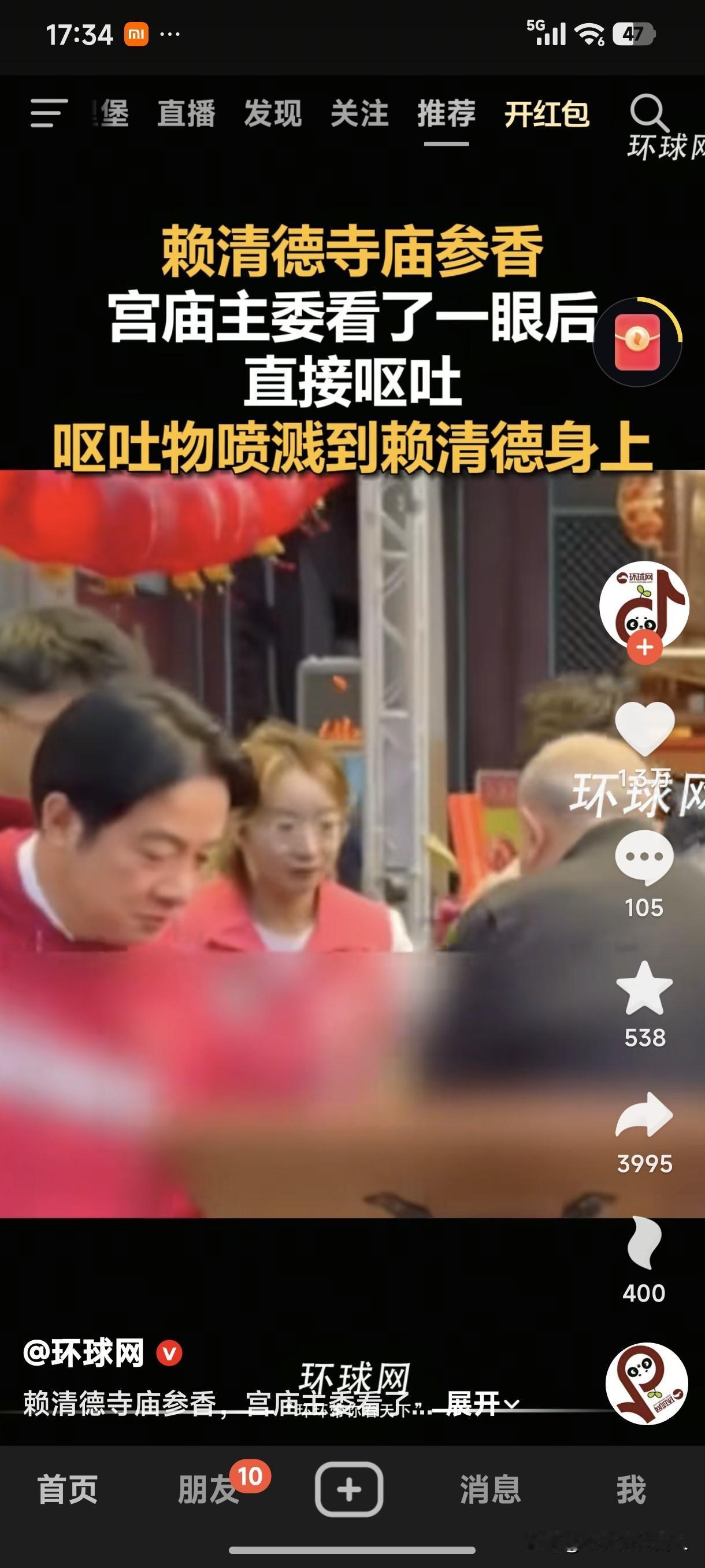 大事不妙啊!大过年时台湾的赖清德被人的呕吐污秽之物溅满一身,此乃不吉之兆,赖清德