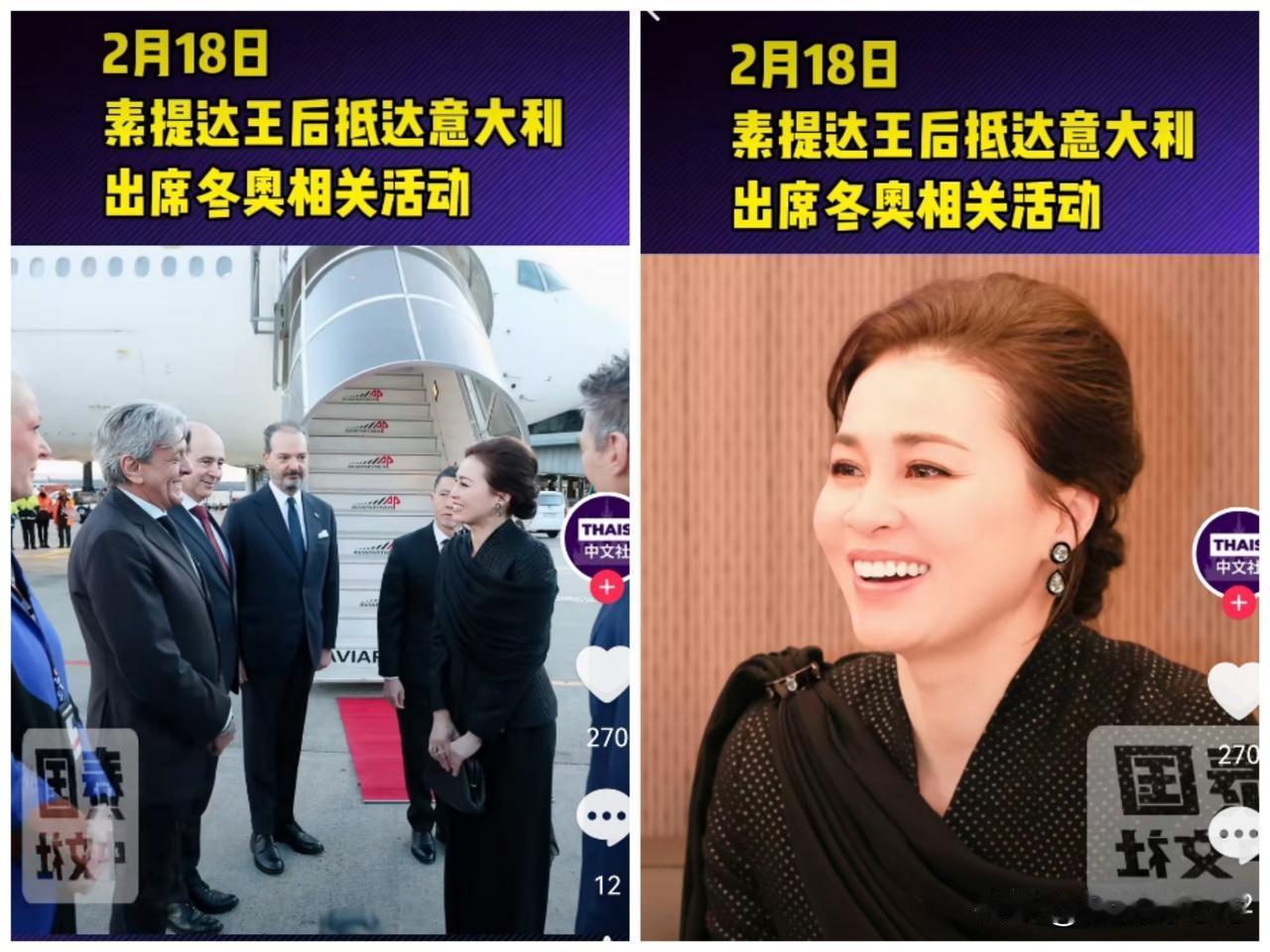 泰国消息 应国际冰球联合会邀请 泰国苏提达王后已于当地时间2月18日顺利抵达意大利,将以女子冰球推广大使身份,出席2026冬季奥林匹克运动会相关活动,同时还会前往米兰观看女子冰球奖牌赛。消息称苏提达王后将于2月18日到2月23日在意大利访问,这次王后出席活动体现了泰国对冰球运动尤其是女子项目的特别支持,苏提达王后曾在2025年用时2小时13分跑完21公里半程马拉松。
