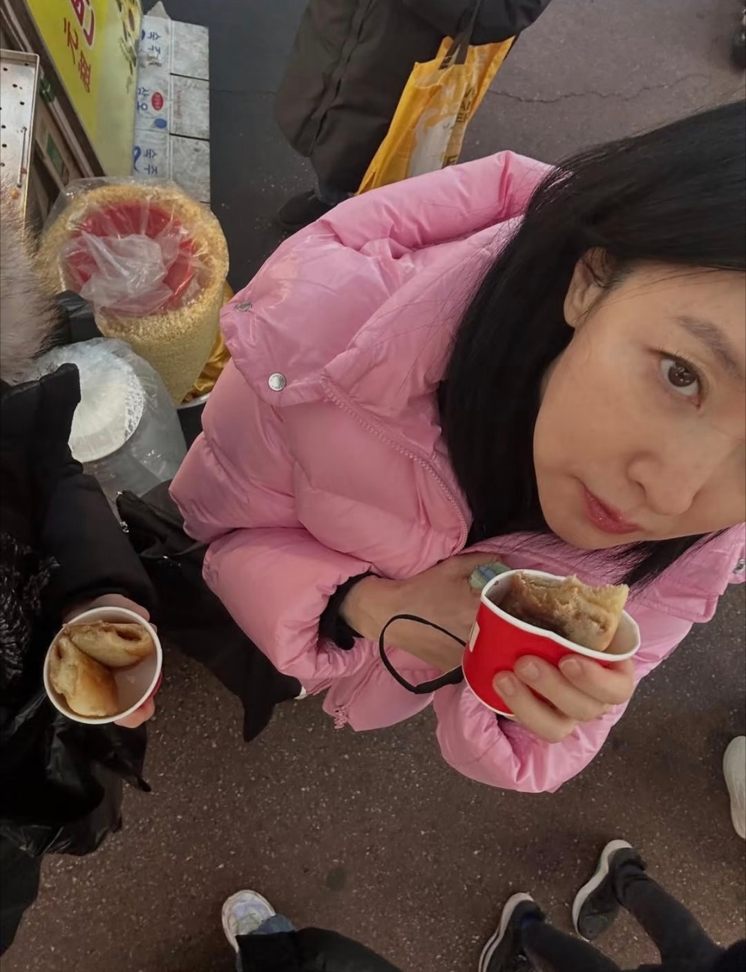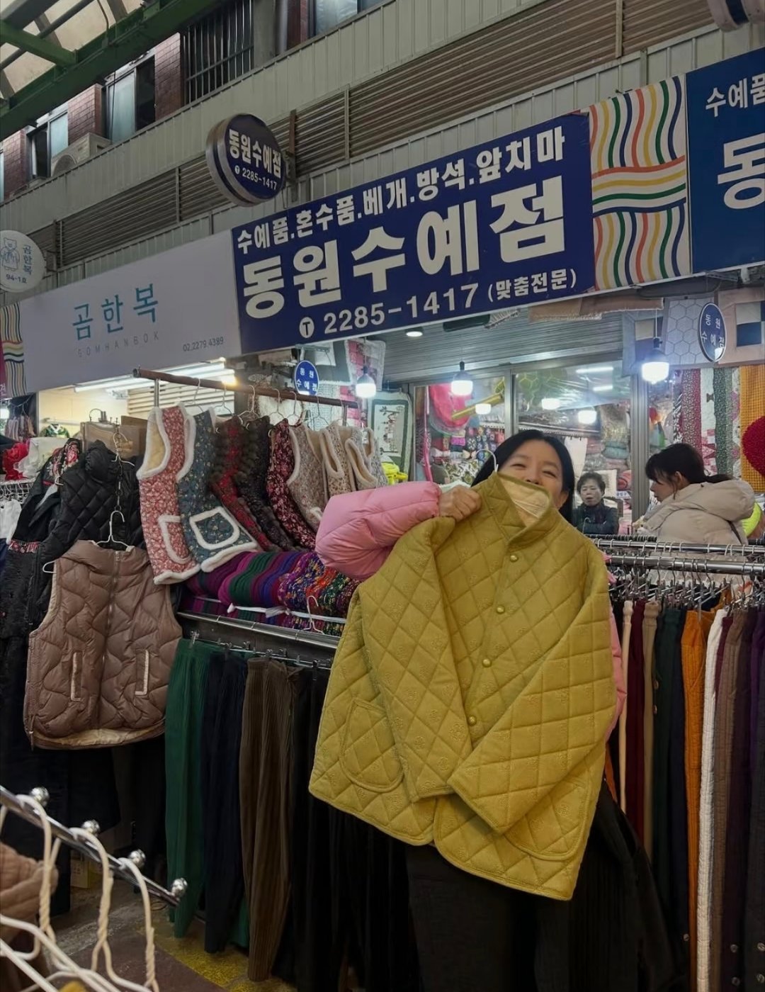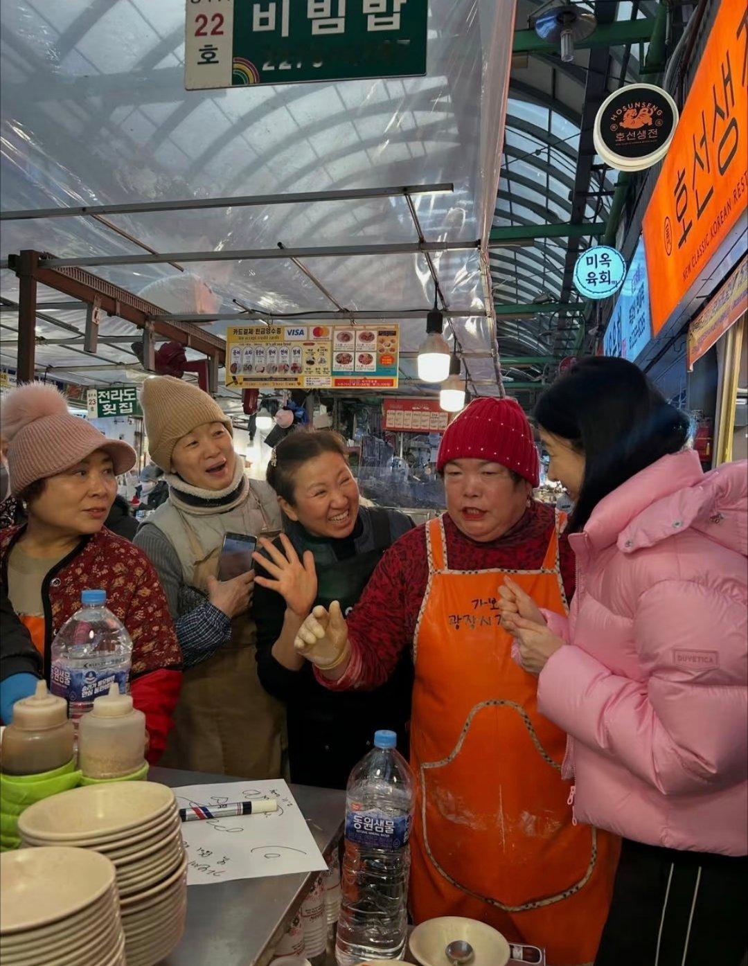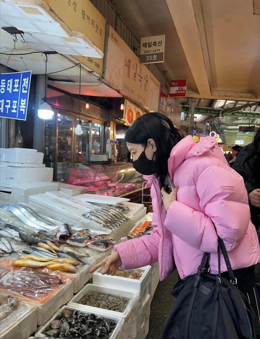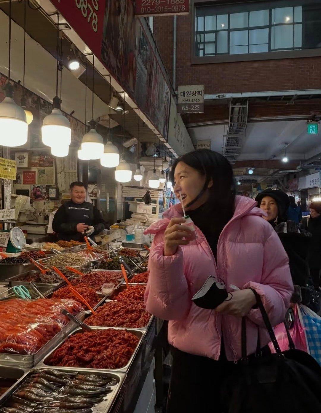 李英爱逛韩国传统市场,美女穿花棉袄也好看!