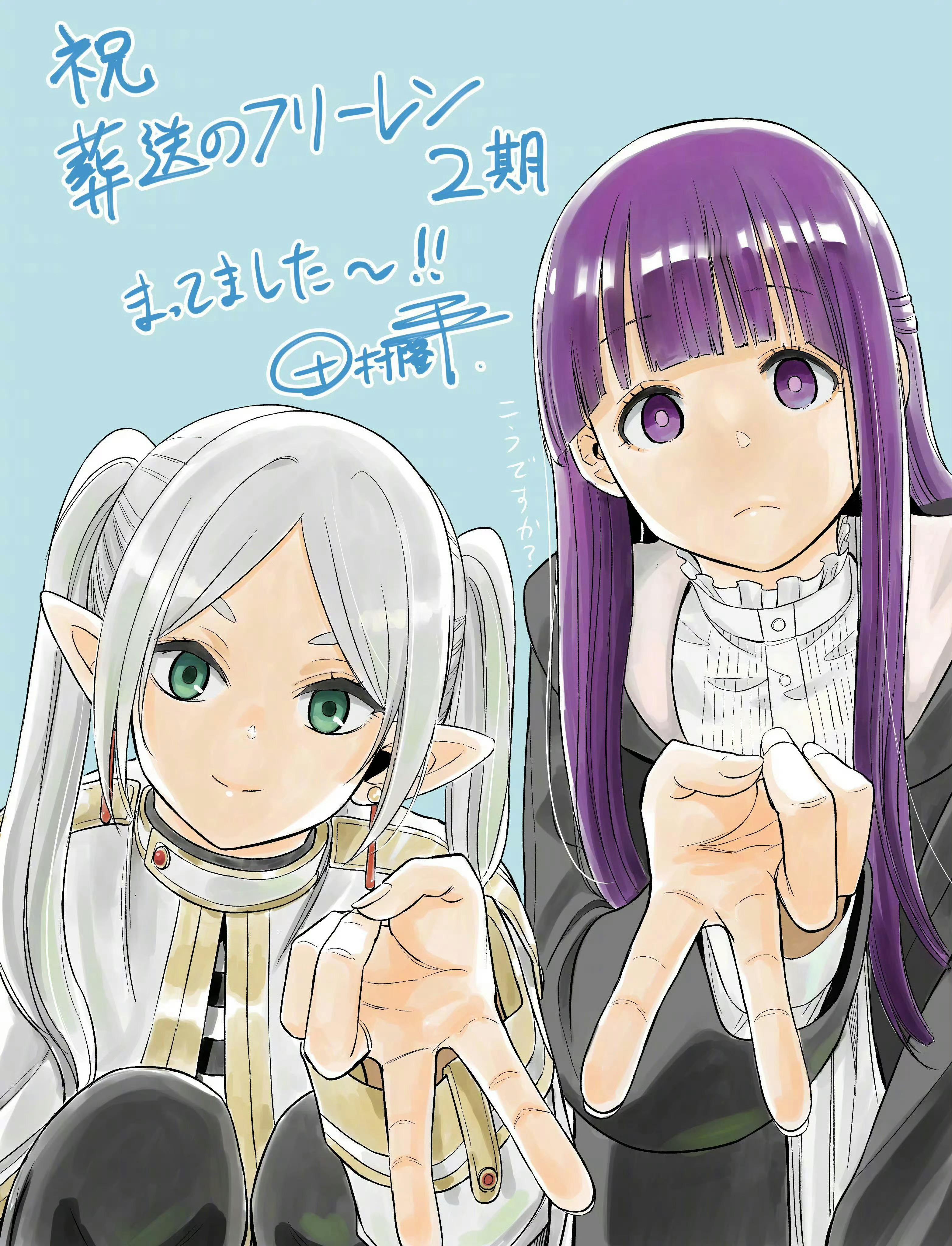 田村隆平老师为葬送的芙莉莲第二季动画特别绘制的贺图,芙莉莲&菲伦比✌🏻自拍!