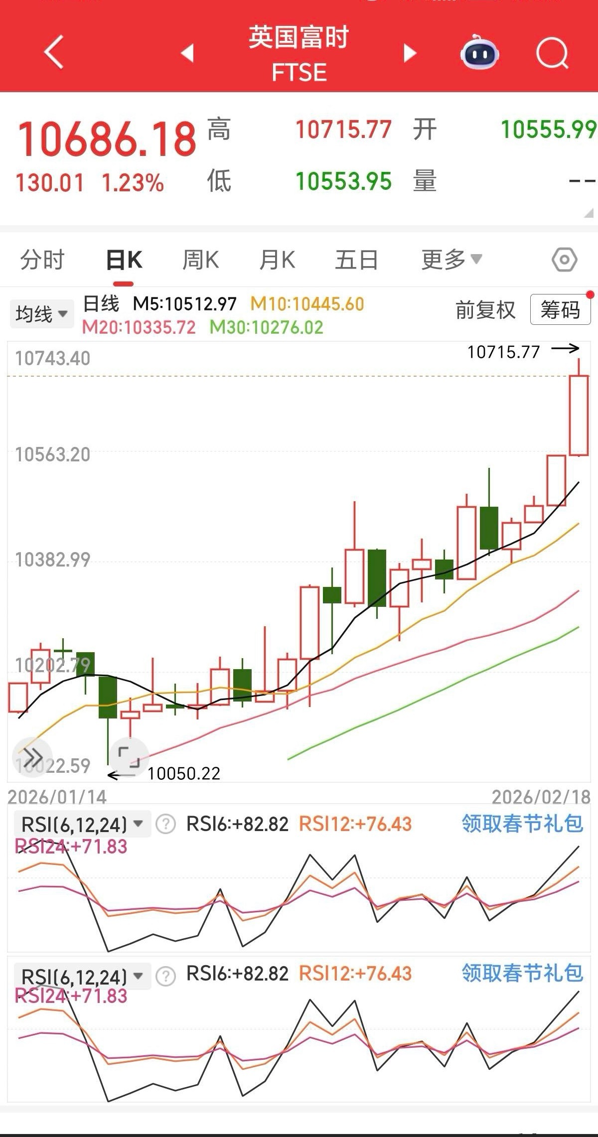 一觉醒来,欧美股市继续上涨,特别是英国股市,一骑绝尘,又连续两天创下历史新高!看一下它的K线图,真像一架通往天宫的云梯,不断的伸向天空,大有不到天宫不罢休的势头,让人羡慕啊!也希望大A向他学习,一步一步的向上走。