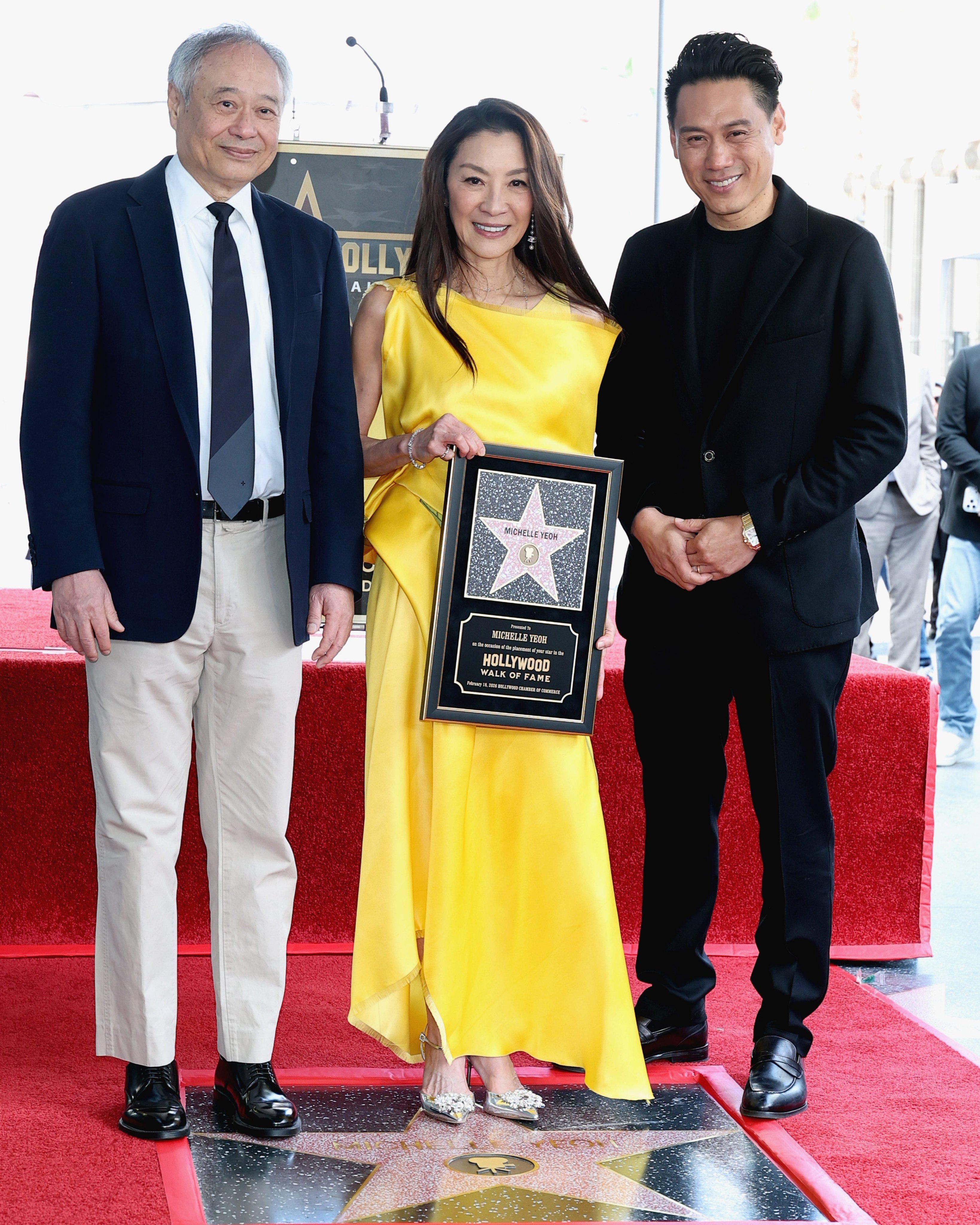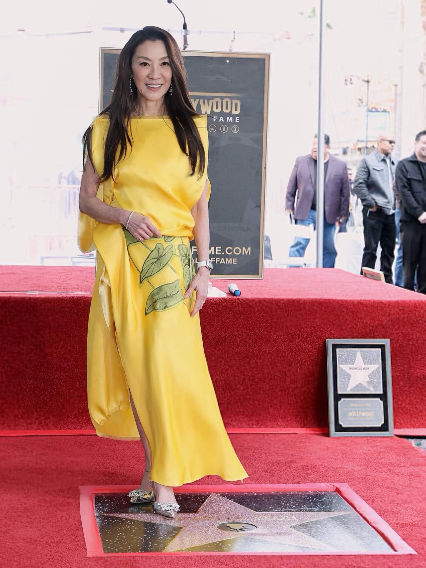 杨紫琼好莱坞星光大道留星杨紫琼今日现身好莱坞星光大道,举行留星仪式。与她合作过的李安、关浩伟、关继威以及奥卡菲娜、吴珊卓等多名电影人共同见证。 杨紫琼也成为继黄柳霜、李小龙、成龙、刘玉玲、温明娜后第六位华裔留星演员。