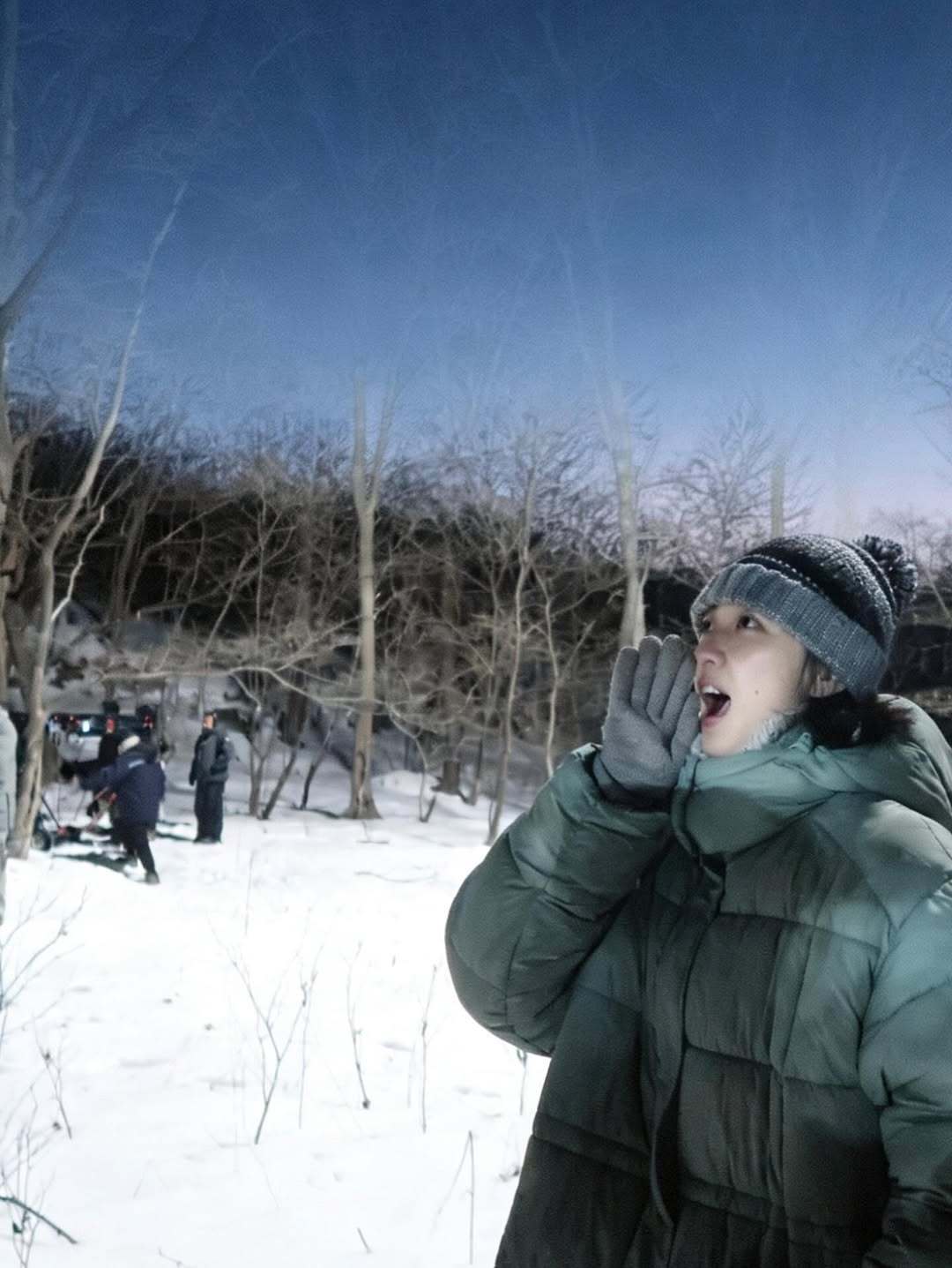 张天爱跟素人合影,胯真的好宽,大宅院似的