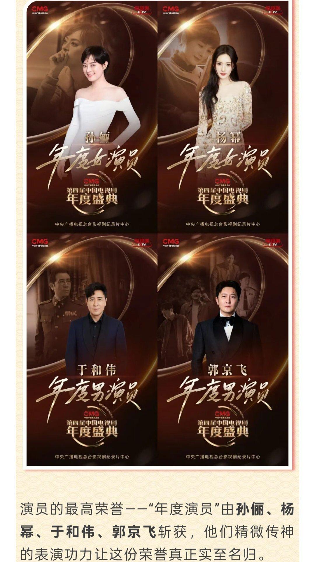 演员的最高荣誉“年度演员”由杨幂斩获。