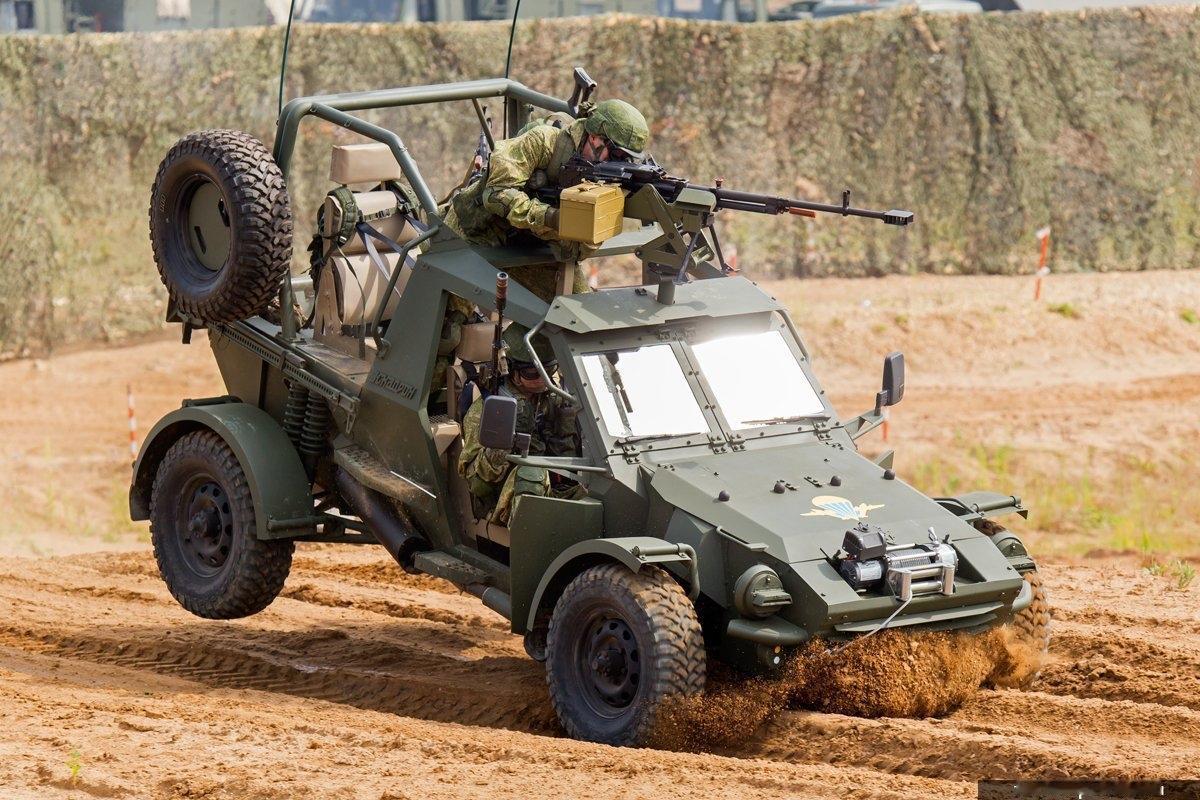 俄罗斯空降突击部队使用的 Eskadron 4x4 越野车。 该车于 2016 年亮相,旨在满足空降兵部队 (VDV) 的要求,为其提供一款快速、轻便且多用途的攻击越野车。 Eskadron 重量不到 3000 公斤,最高速度为 150 公里/小时,可搭载多种武器平台,包括 12.7 毫米 6P50 Kord 重机枪、S-8 火箭发射器或 9M133 Kornet 导弹。该车辆的有效载荷约为 3000 公斤,可运载 4 名乘客和 1500 公斤的额外有效载荷。