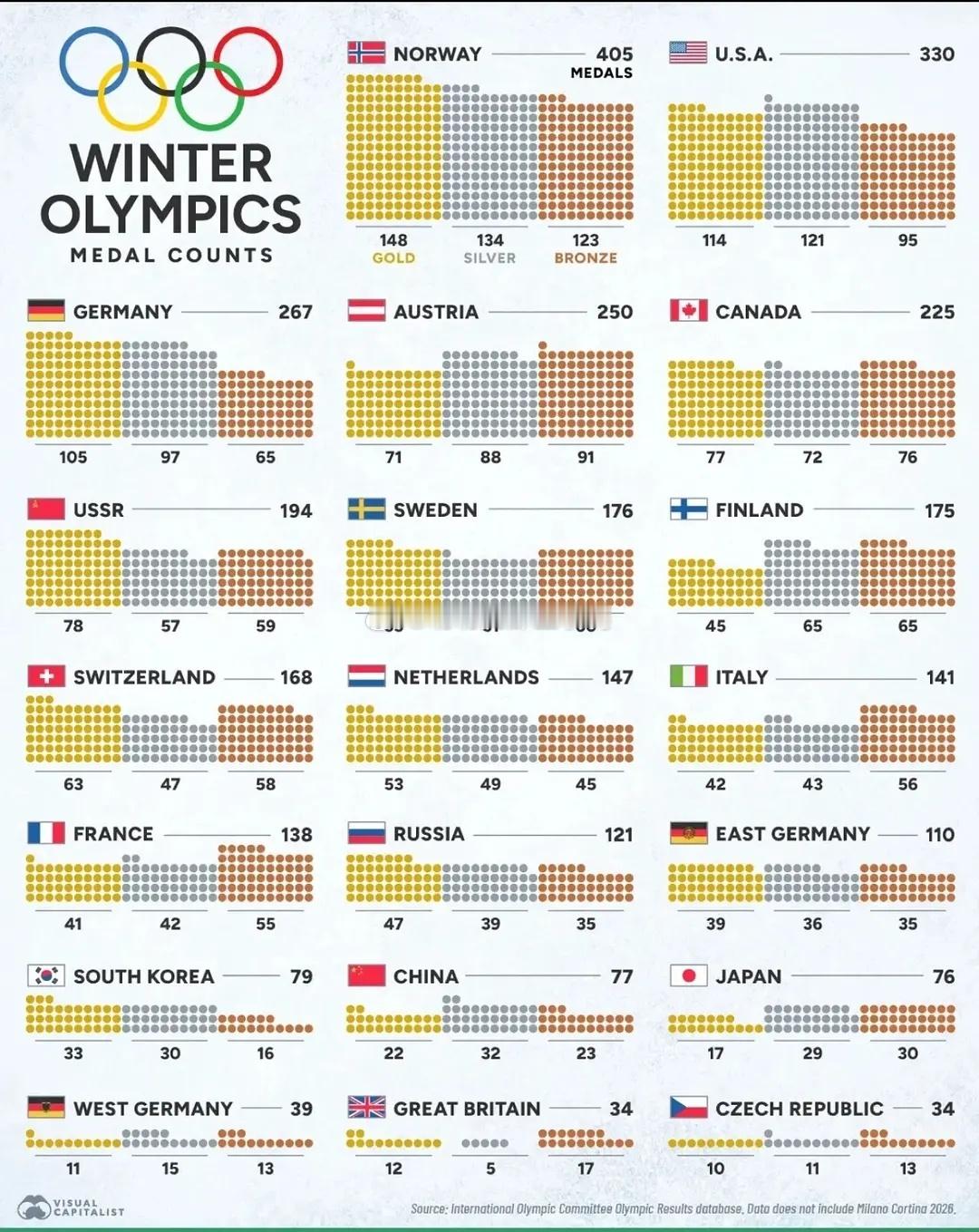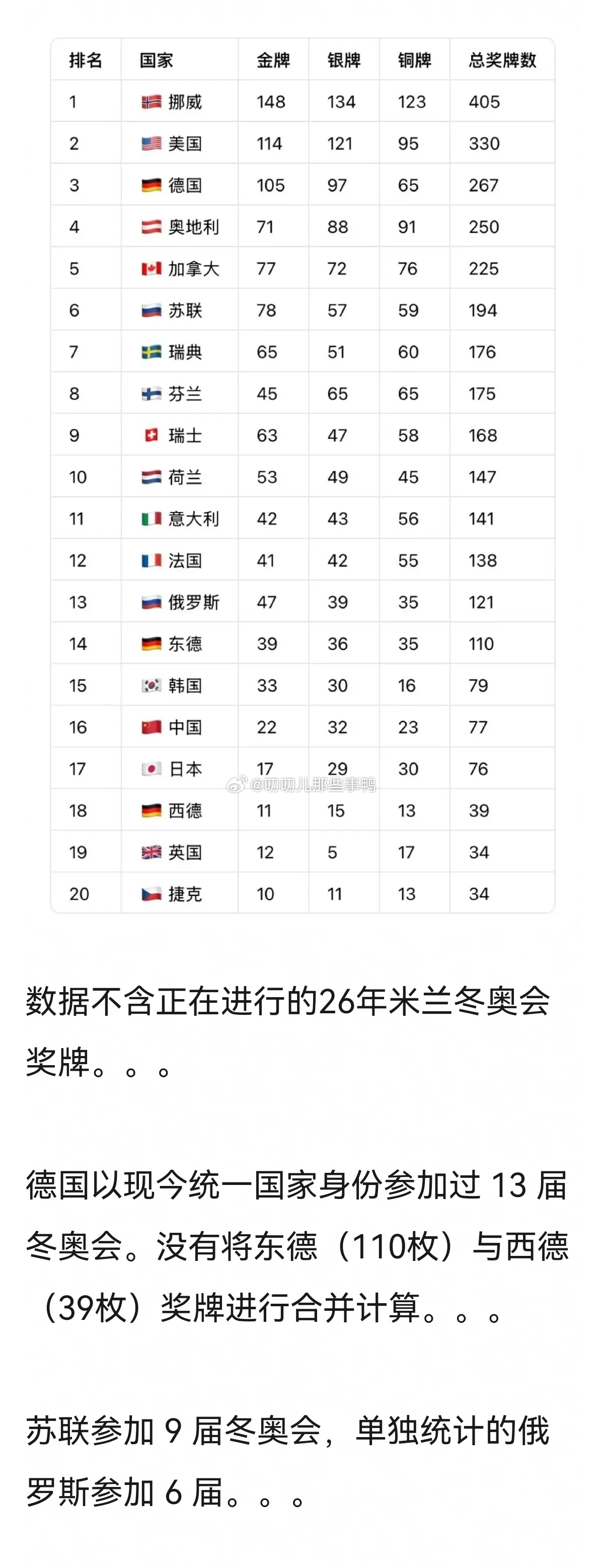 历届冬奥会奖牌总数排名~🥇🥇