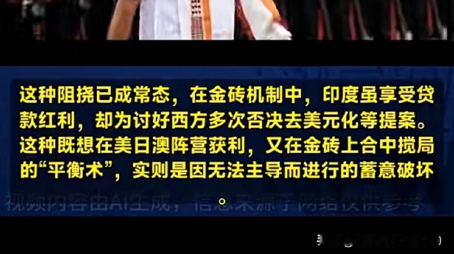 印度直接威胁中国! 不妥协就退出金砖!! 一边拿着金砖低息贷款搞基建,一边给西方当马前卒,去美元化、扩容提案次次否决,就因为自己当不了老大。 别人在为新兴国家谋出路,它一门心思搞破坏,现在拿退群当筹码,本质就是没本事主导,就想掀桌子。 专家说得太对:印度退群才是金砖的解脱。少了这个只想索取、不想担当的“搅局者”,大家才能甩开膀子干。它爱走不走,走了反而清净。 说到底,印度的大国梦,从来不是靠实力,而是靠碰瓷耍赖。这种小心思,只会让自己越来越孤立。 你觉得印度这次是真退,还是又在演?