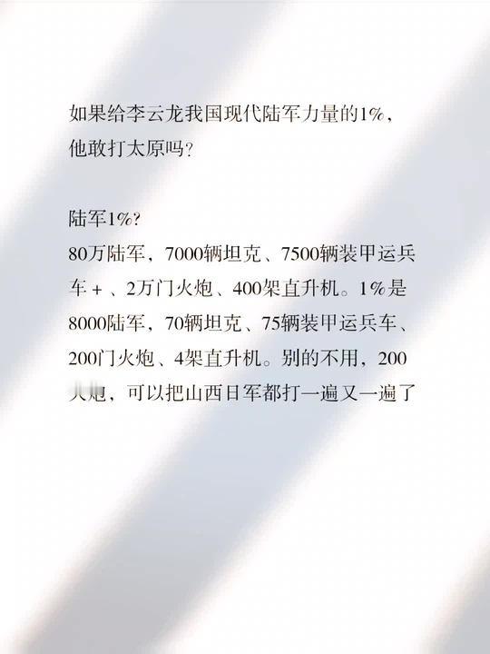 现在我国陆军1%的力量,大约相当于1.5个合成旅,别说打太原了,打到柏林都有富裕。