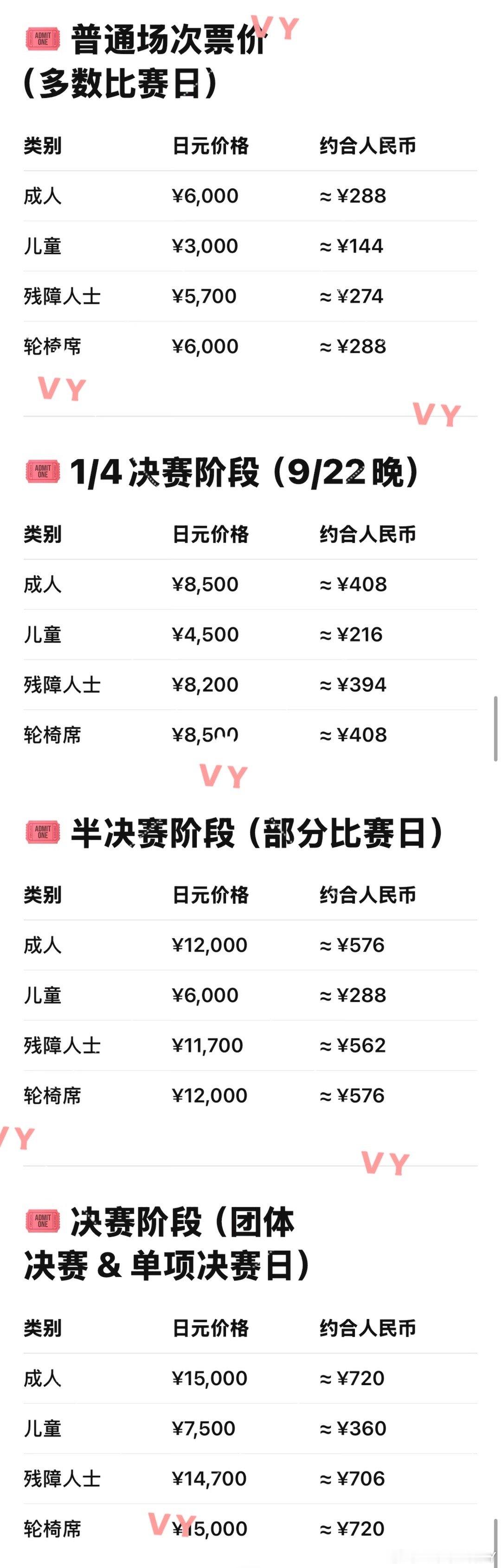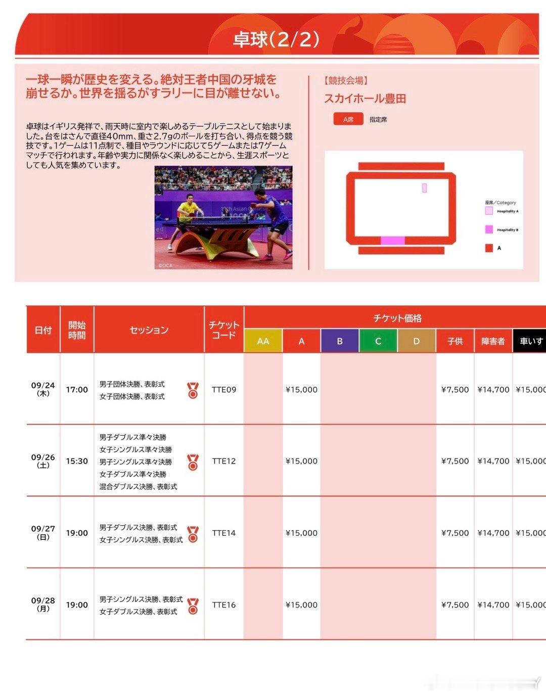 2026爱知亚运会·票价特别注意:本次1/4轮次之前的比赛是“自由席位”好位置先到先得