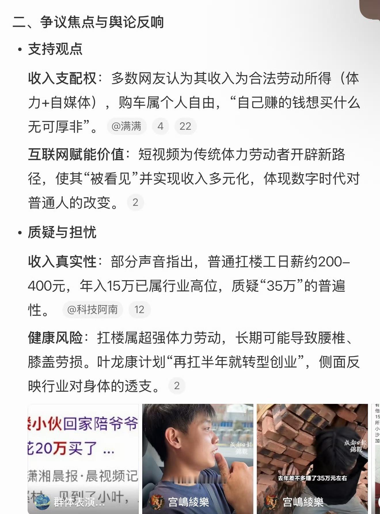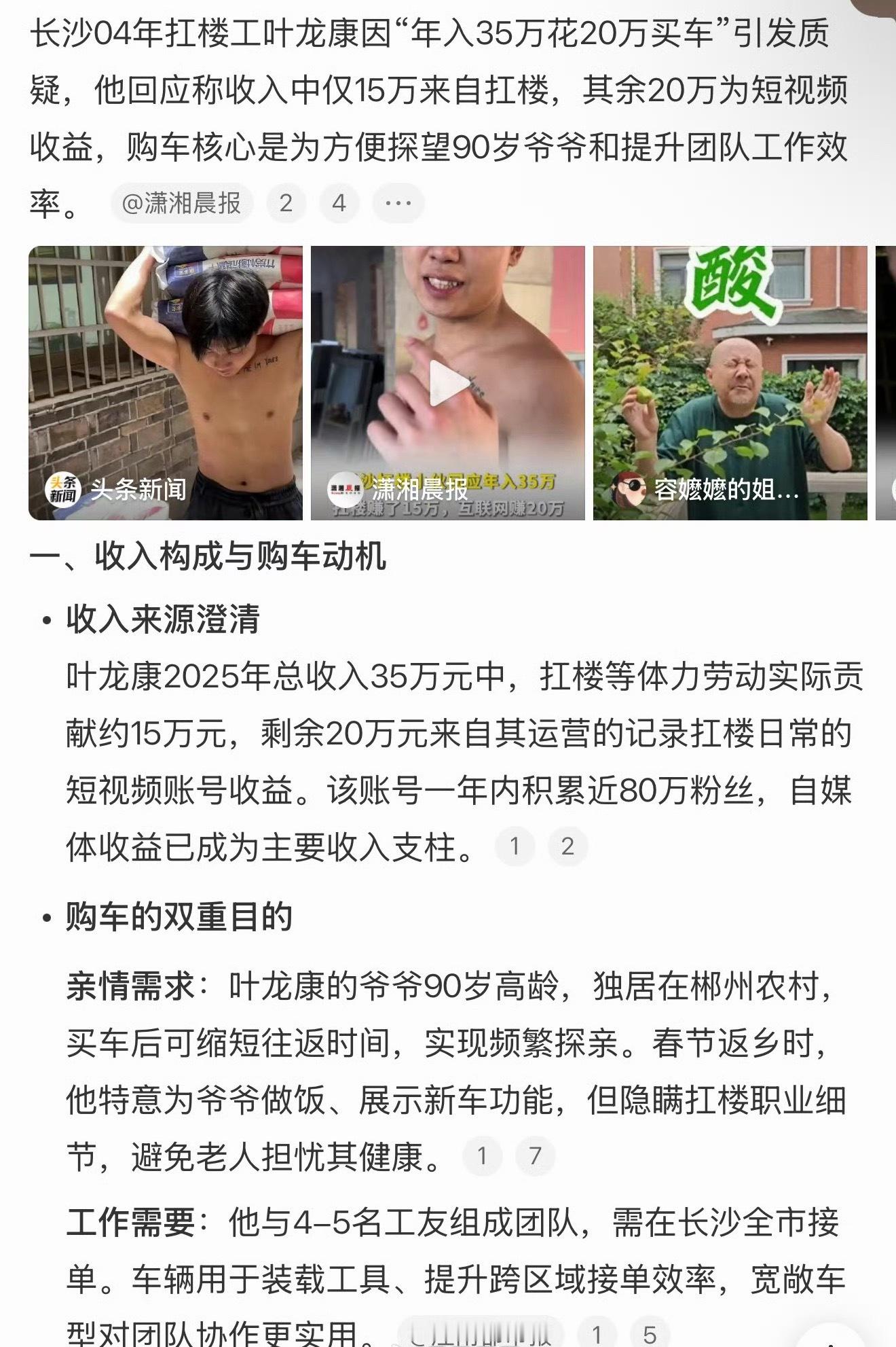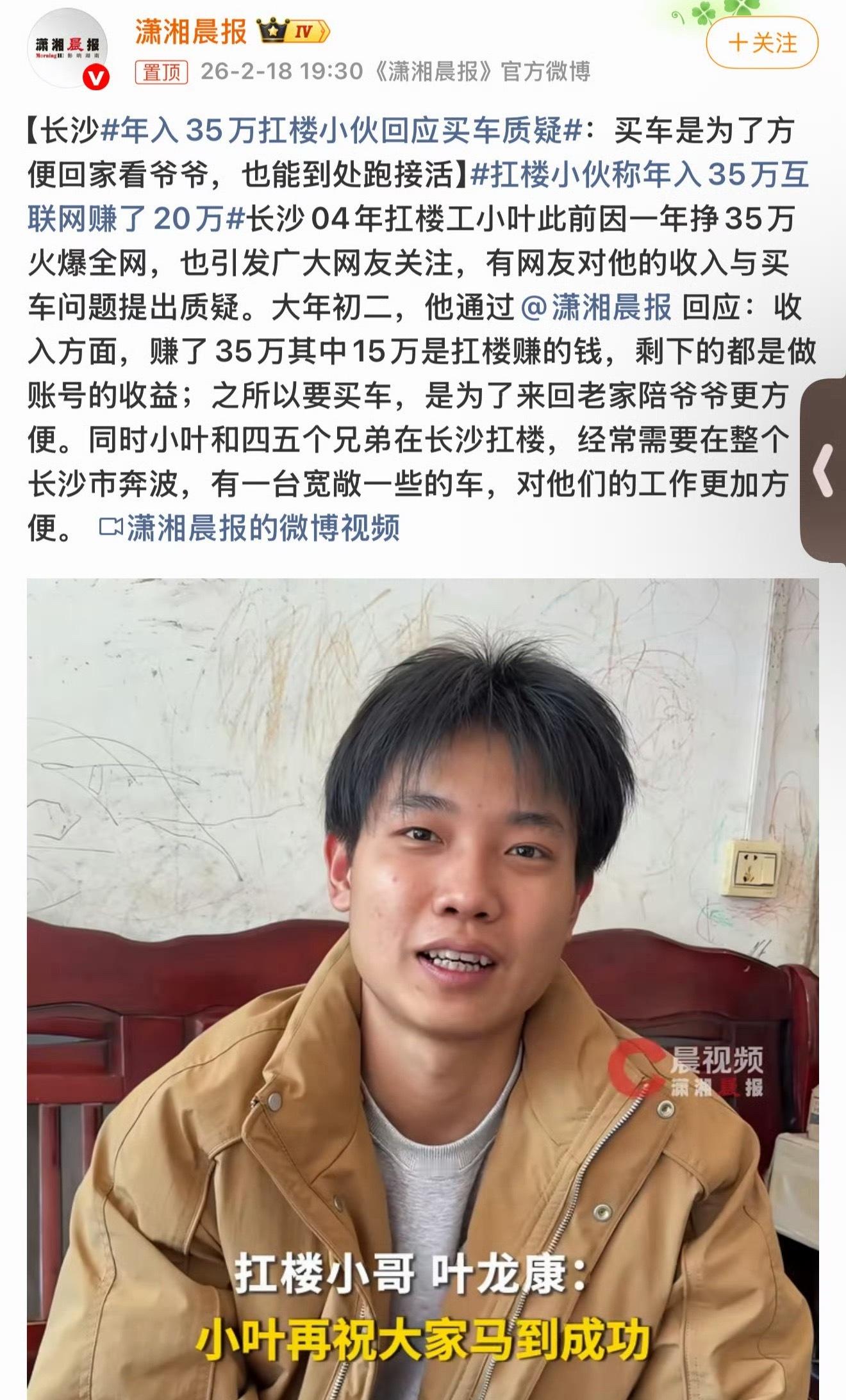 年入35万扛楼小伙回应买车质疑我是觉得,用自己赚的辛苦钱买车,一点毛病没有
