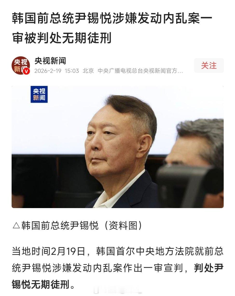 尹锡悦今天或被判死刑韩国前总统尹锡悦涉嫌发动内乱案一审被判处无期徒刑! 尹锡悦被判无期徒刑
