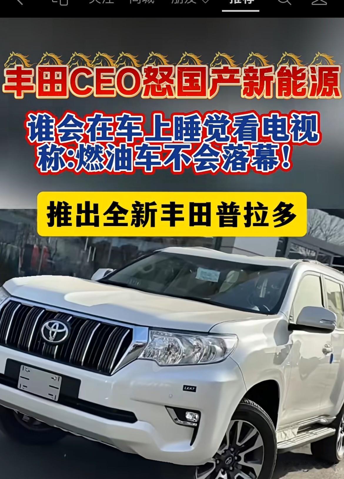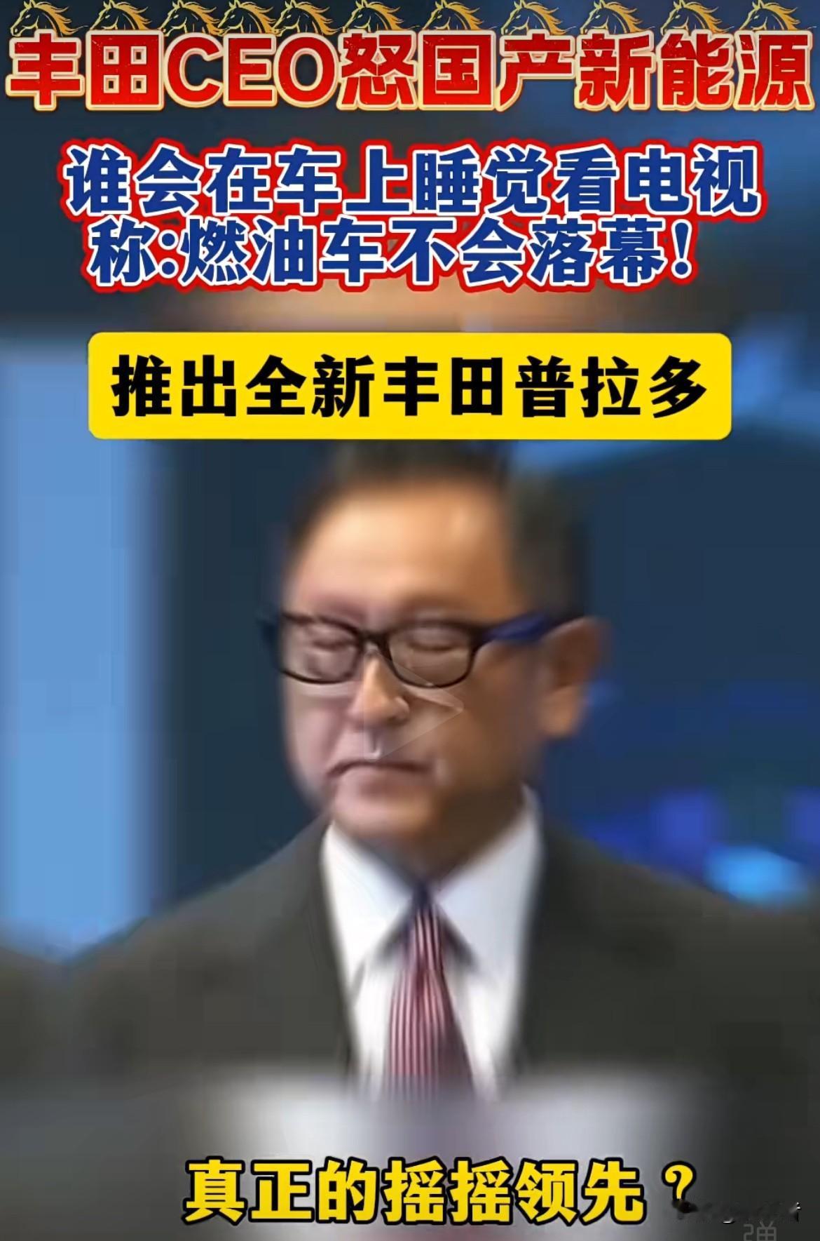 丰田CEO丰田章男怒怼中国新能源,觉得人们不会在电动车里睡觉或看电视,燃油车永不落幕。他给出的理由是电池技术没突破、充电站少、冬天续航下降快等。确实,丰田在中国电动车销量占比不到总销量的8%,还靠卡罗拉、凯美瑞等燃油车赚钱,他们不想被中国电动车发展模式牵着走。大家怎么看……