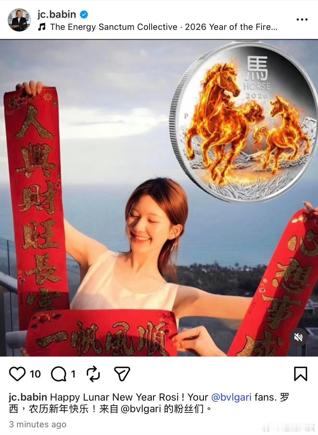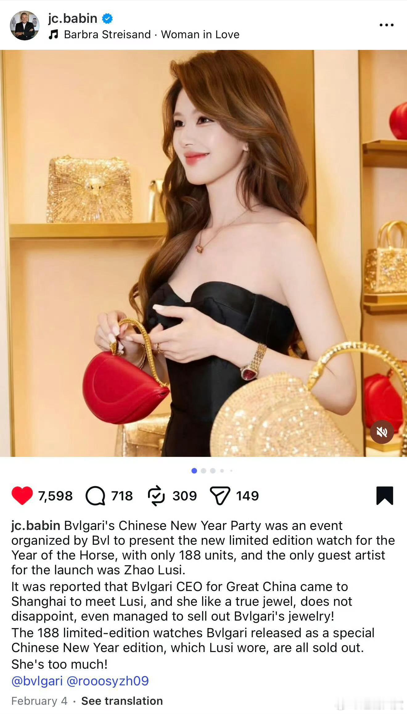 宝格丽总裁ins连续两年祝赵露思新年快乐,这个总裁就这样爱我们代言人,宝格丽女王!