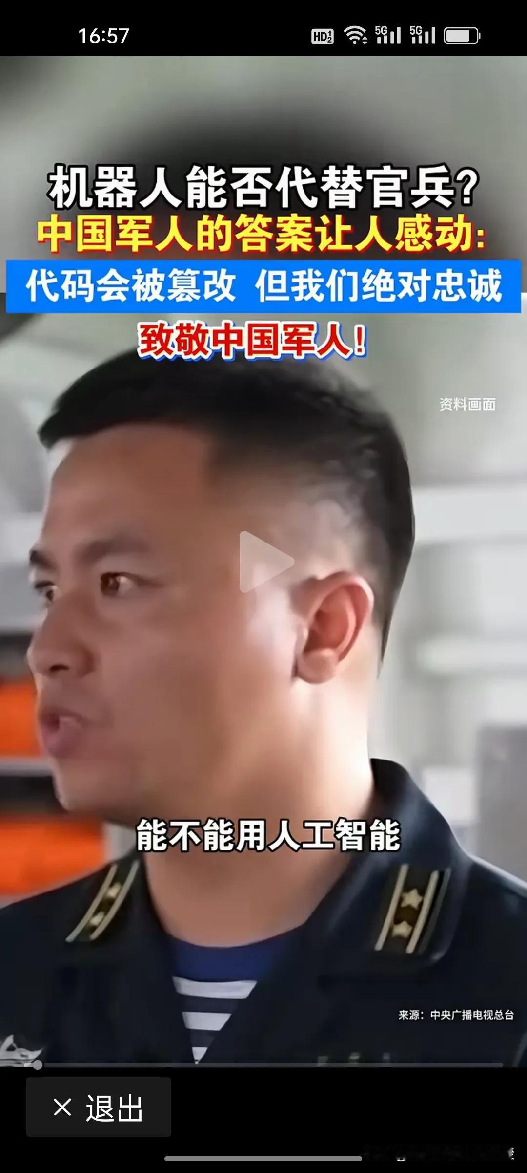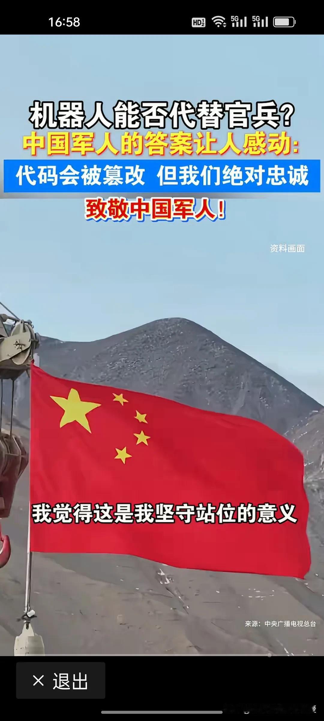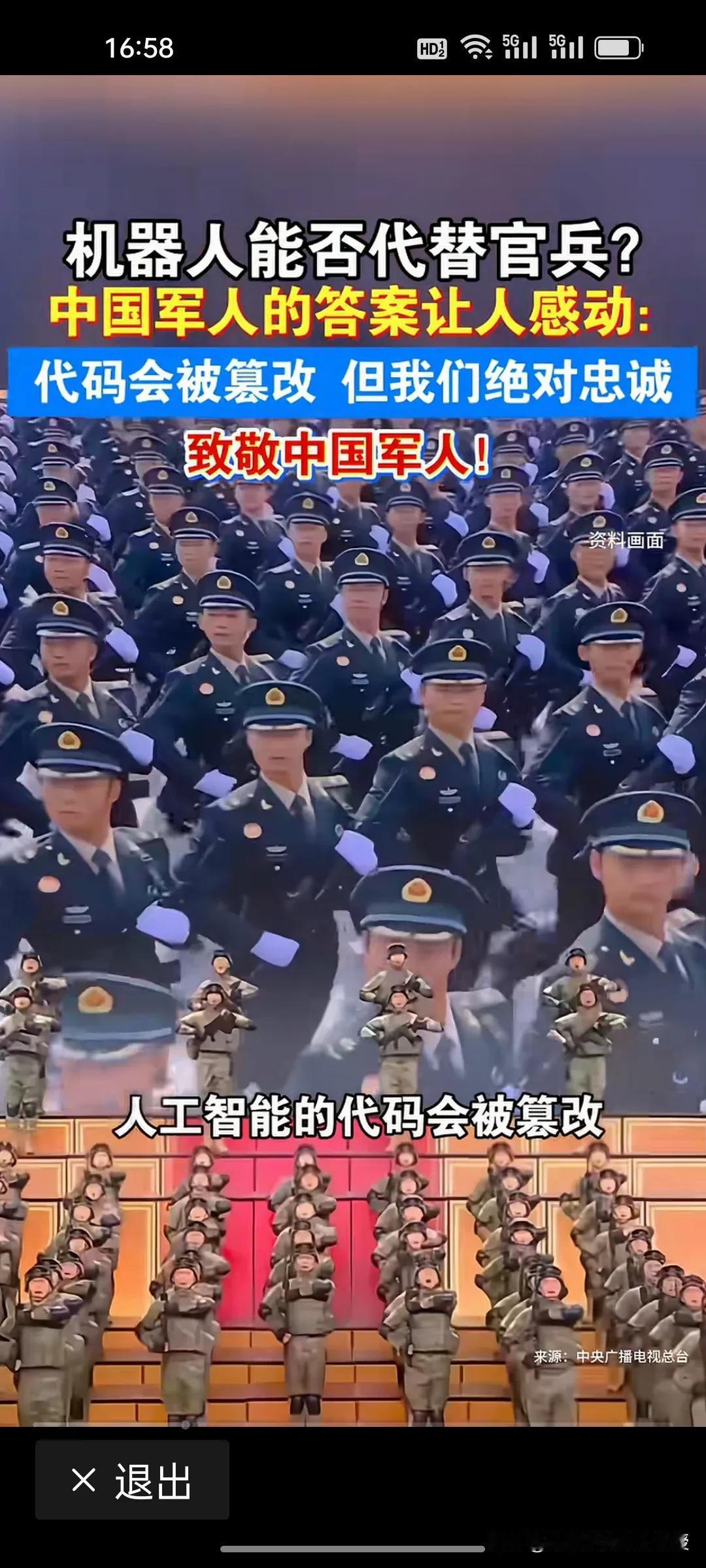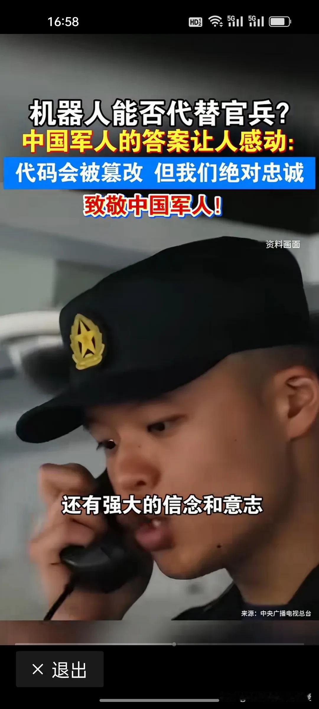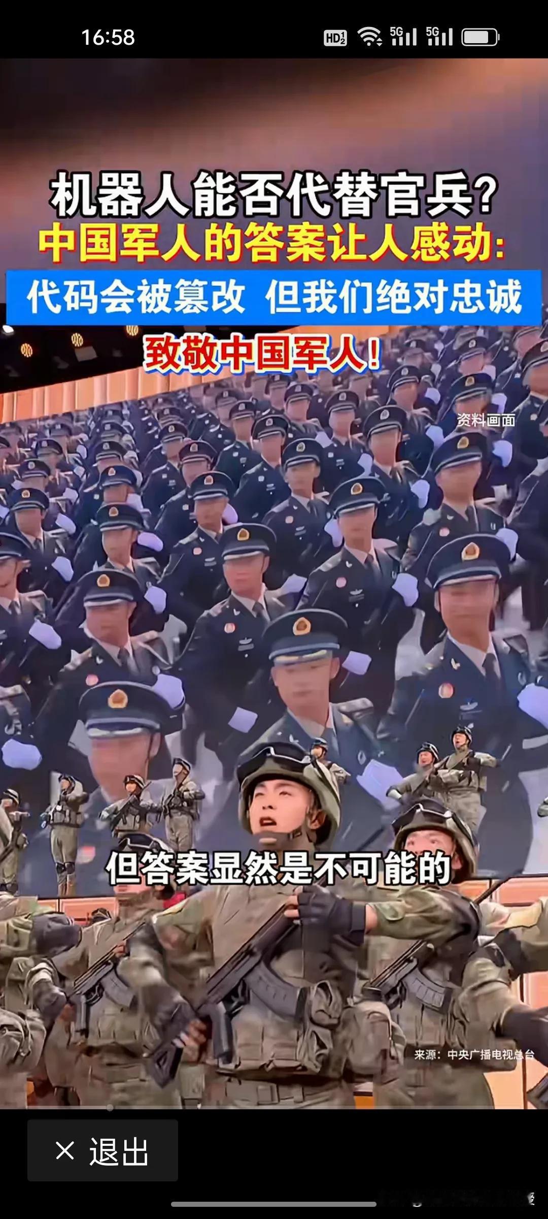 机器人能代替战士吗?中国军人的答案,让人热泪盈眶! 中国军人的回答掷地有声:代码会被篡改,但我们绝对忠诚;机器人没有“家”的概念,而战士们守护的,是身后的万家灯火。 他们有信念、有意志,有“守好大家,也守好小家”的牵挂,有灵活的战术与不可动摇的使命。 战士们怀揣家国情怀,明知艰险仍义无反顾,这份热血与担当,是代码永远模拟不出的。战场上的决断、绝境中的坚守、对人民的赤诚,是机械永远无法拥有的灵魂。 科技再强,也替代不了血肉之躯里的忠诚与热爱。致敬中国军人,这才是我们最坚实的底气!
