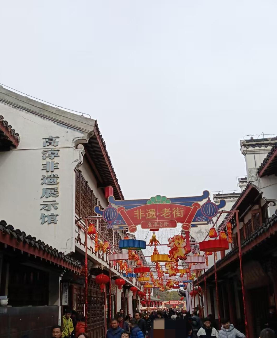 今天是大年初三,南京高淳老街游客众多,人头攒动。这也是近几年去高淳老街游玩,第一次发现今天游客是这么多。 我们以前习惯性的停在县府路停车位,这里车辆停满,等到半个小时没有车子动。更有一些司机沿着河边道路向西开了一公里,愣是没找到停车位停车。好在过年,老街景区周围没收停车费。 许多游客都选择是大年初一在家,大年初二拜年,大年初三出去玩。 游客多,购买力强。老街商贩忙的乐呵呵,是最开心的。商铺里卖的最多的是臭干,蒸糕,水阳干子等当地特产。有10元5包的香干,也有10元4包的干子,更有高淳当地产的香干,臭干。两包干子卖10块钱,购买的游客还特别多。更有小时候味道的香米糕最受欢迎。 下午3点。高淳老街周围已经开戒严,车辆只出不进。数百名警察已经上岗,晚上这里将有大型的活动。吃,住,玩,在高淳,能吸引一些游客在高淳兜留。 今天来高淳旅游的大多是附近安徽宣城皖P,马鞍山皖E,溧阳苏D车牌的游客。自选的周边一日游。