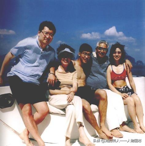 荣智健(右二)和夫人任顺弥(右四)、儿子荣明杰、荣明棣、女儿荣明方在一起。